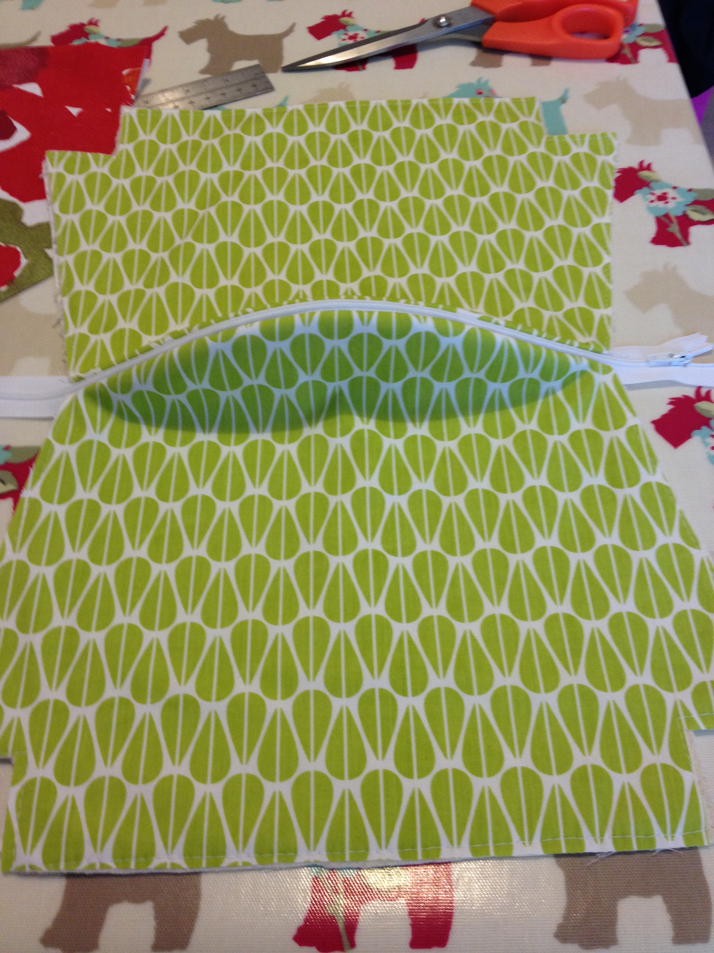 Using your zipper foot sew all the way from end to end, close to the edge of the zipper but not too close as the zip will struggle to open once the make up bag is finished..