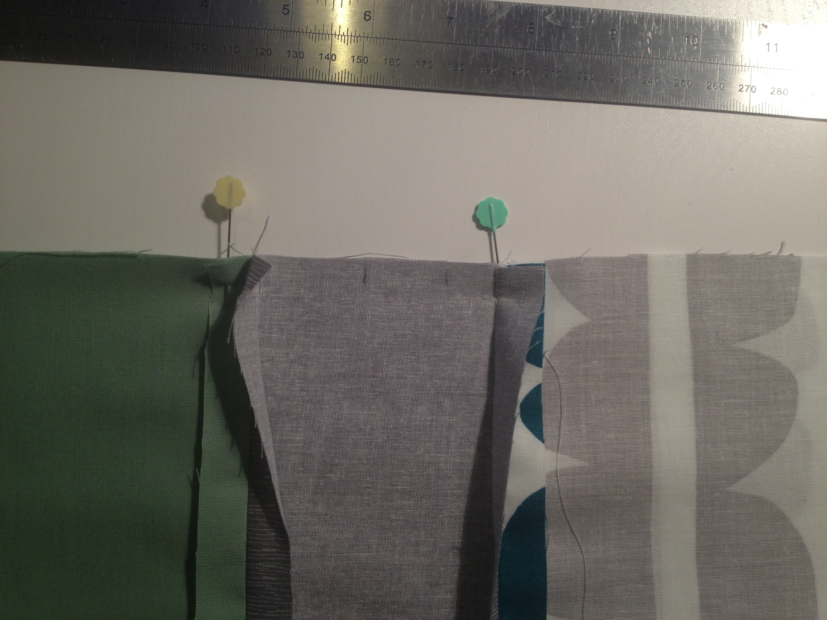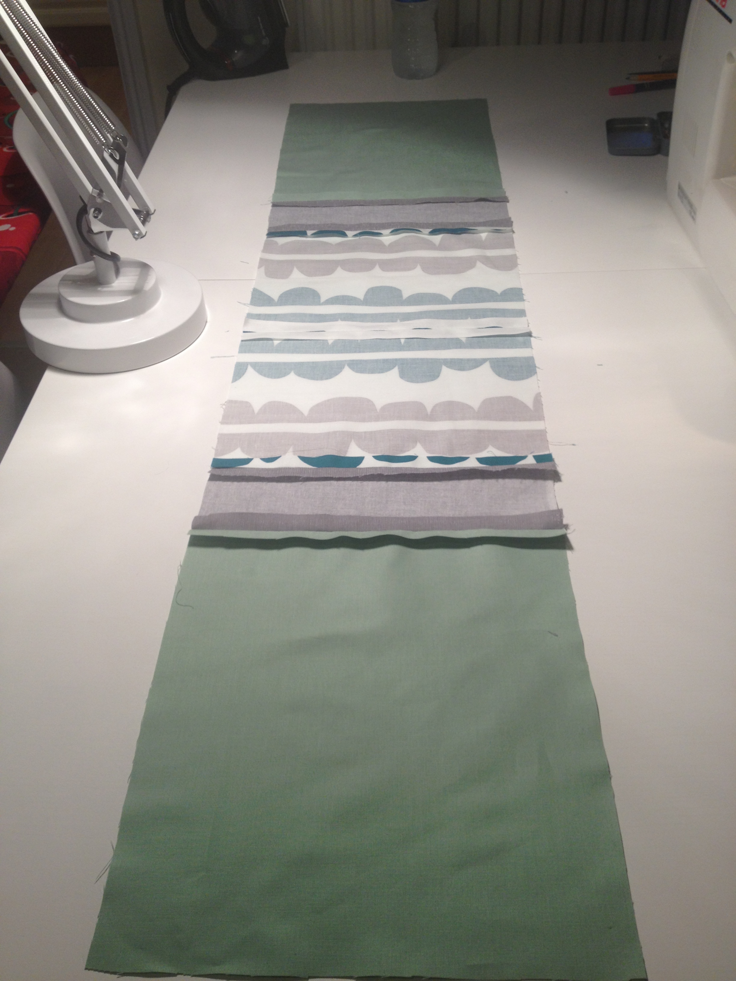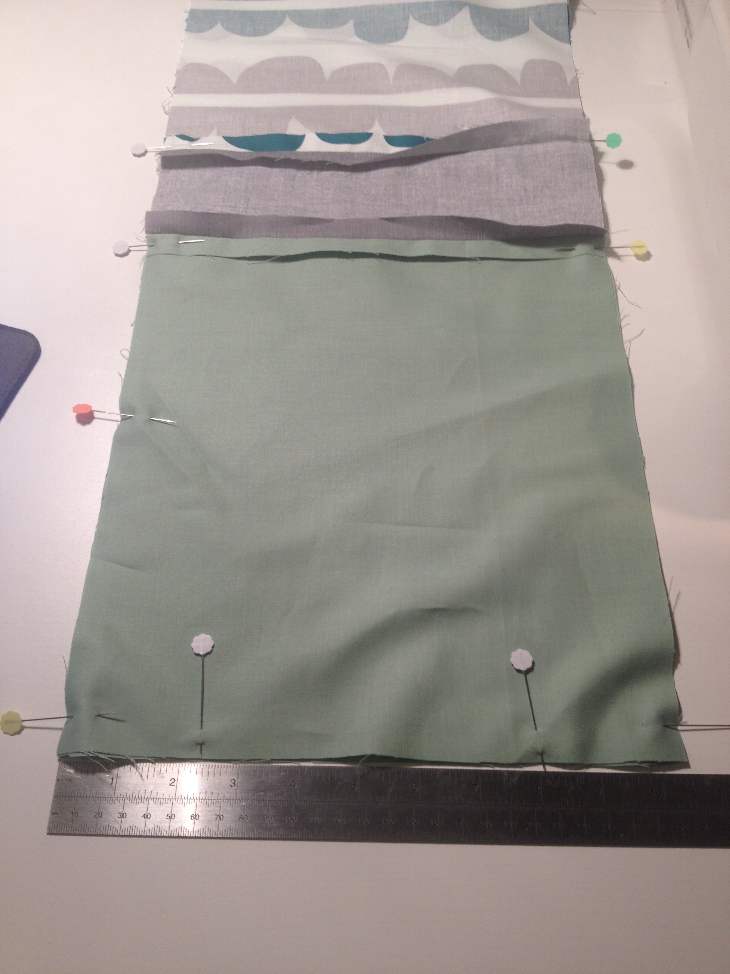 Then join the two main bottom pieces together so that you end up with one long piece of fabric. Iron open your seams: