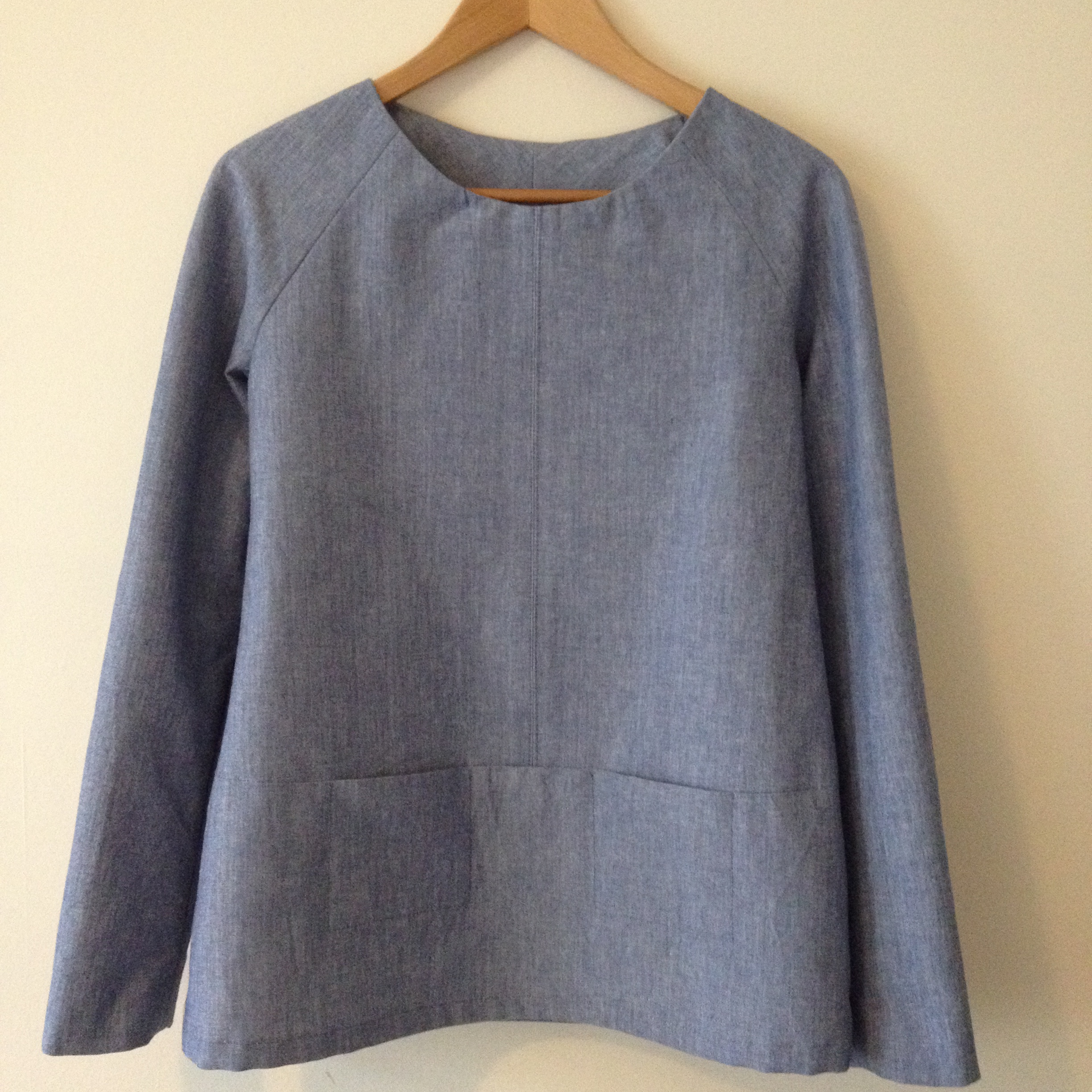 The Top #64 can be interpreted as a workwear garment, artists smock or smart jumper. With in-seam pockets, it is a versatile feminine take on the style and function of a fisherman’s top. Choose a fabric with body to hold the shape. Suggested fabrics include canvas, heavyweight cotton or denim and oilskin. For a jumper look, use a thick woolen.