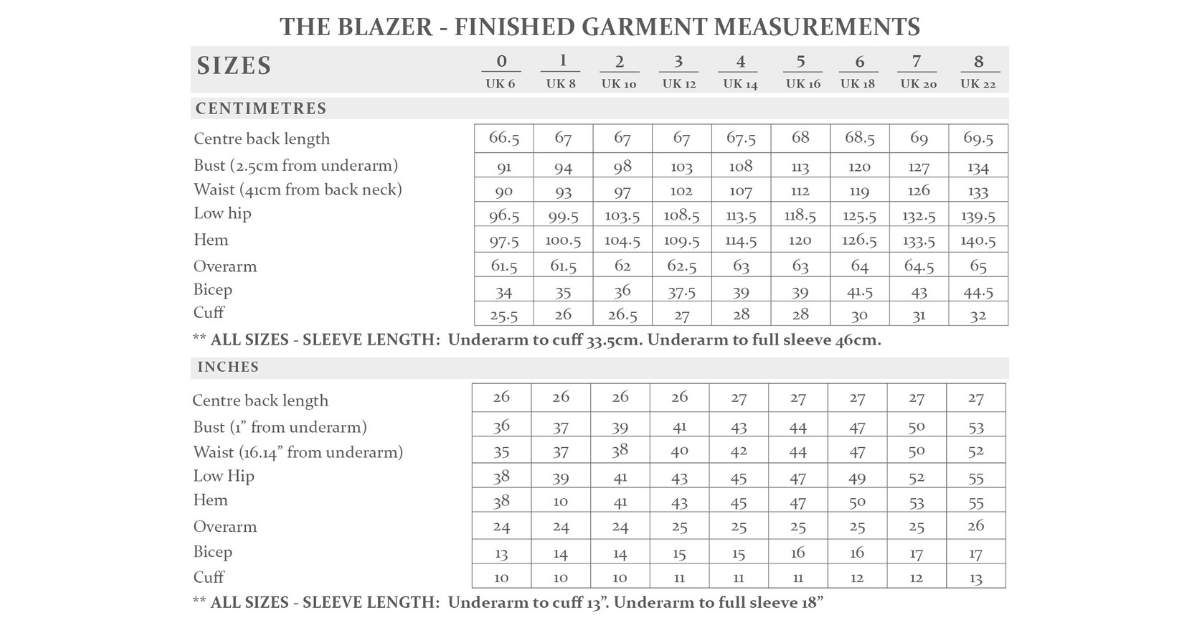 The finished garment measurements are larger than the body measurements so that there is room to move when wearing the garment. Some garments have more ease in them than others and the style of the garment will determine how much ease has been added. Once you have taken your body measurements, refer to the finished garment measurements – either printed on the pattern envelope or provided seperately. You can now determine which size you will be making as you can compare between the body and finished garment measurements. Locate the size that is closest to your body measurements, depending on the fit of the garment.
