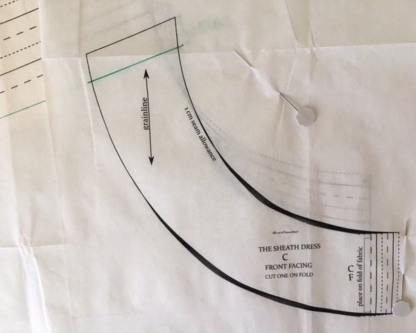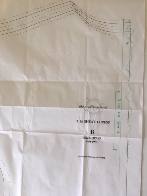 You need to remove the seam allowance of 1.5cm down the CB piece of the garment and on the facing piece. You can now place this on the fold of the fabric.
