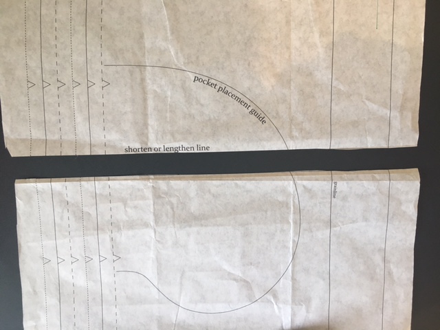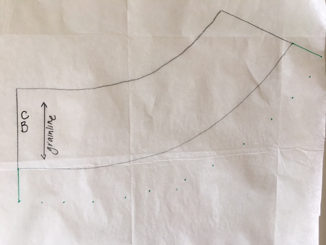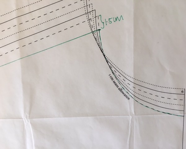 Step 4 – take your facing piece and place over the front pattern piece and trace through your new line.