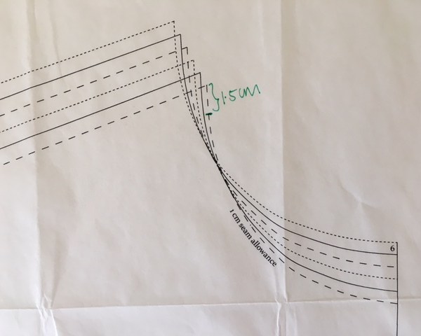 Step 2 – On your pattern piece measure the amount you are taking off and mark. This is your new neckline point.