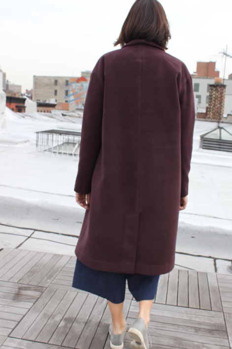 Our coat has received such an incredible response and we know that many of you will be scouring the fabric shops looking for some gorgeous fabric to make your coat in. We have a serious fashion crush on Charlotte from Noble & Daughter and asked her to make up our coat in the burgundy melange fleece from our kit range (unfortunately now sold out)… feel free to drool over her gorgeous coat – we know we are!