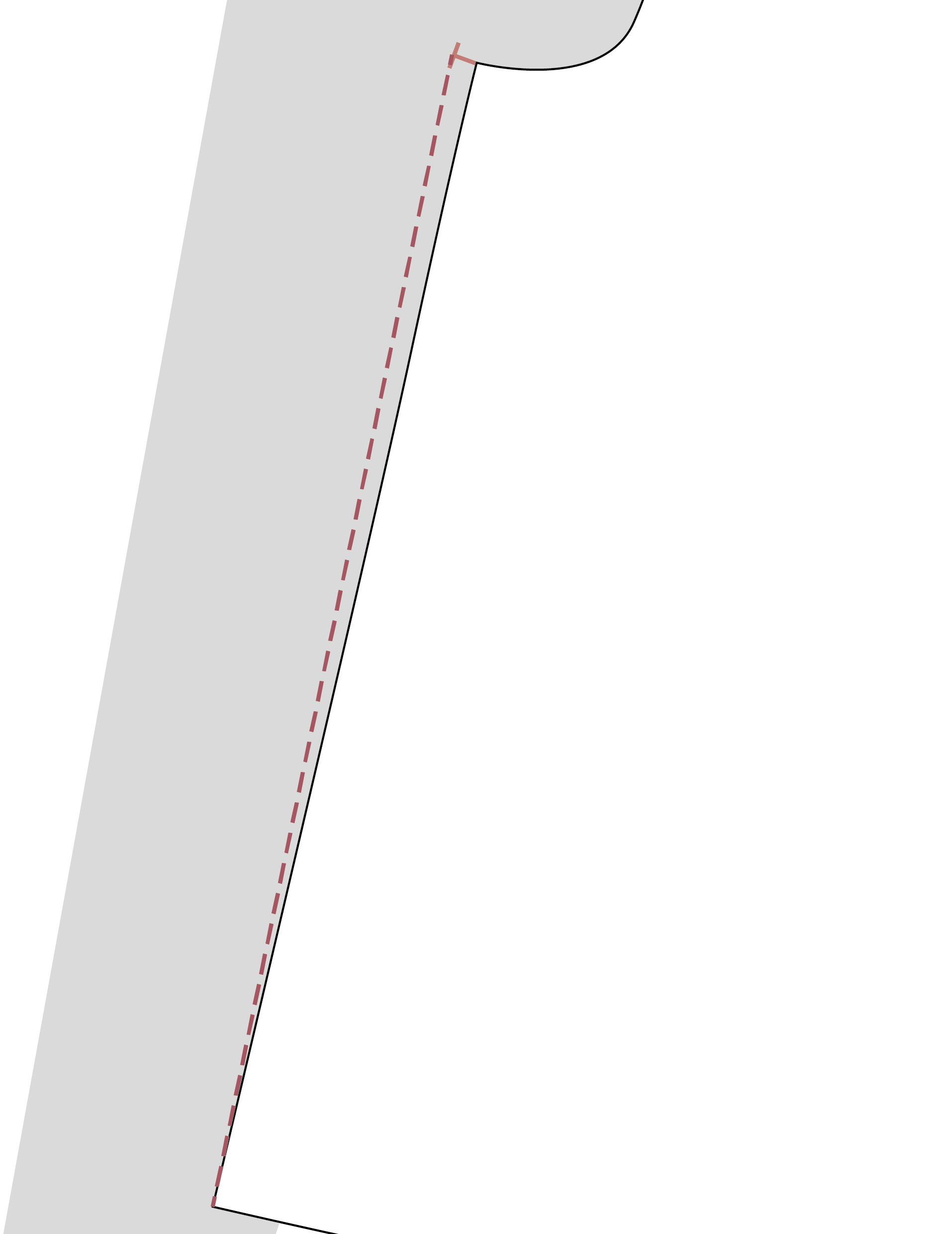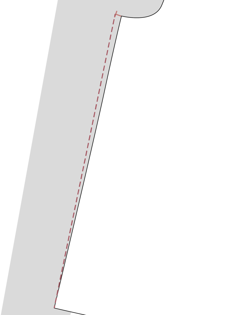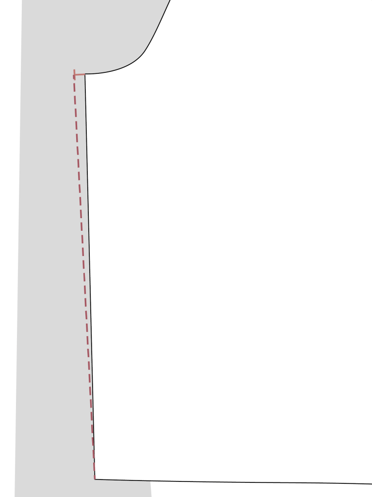 From this 1cm extension, draw the new side seam line down to nothing at the hem.