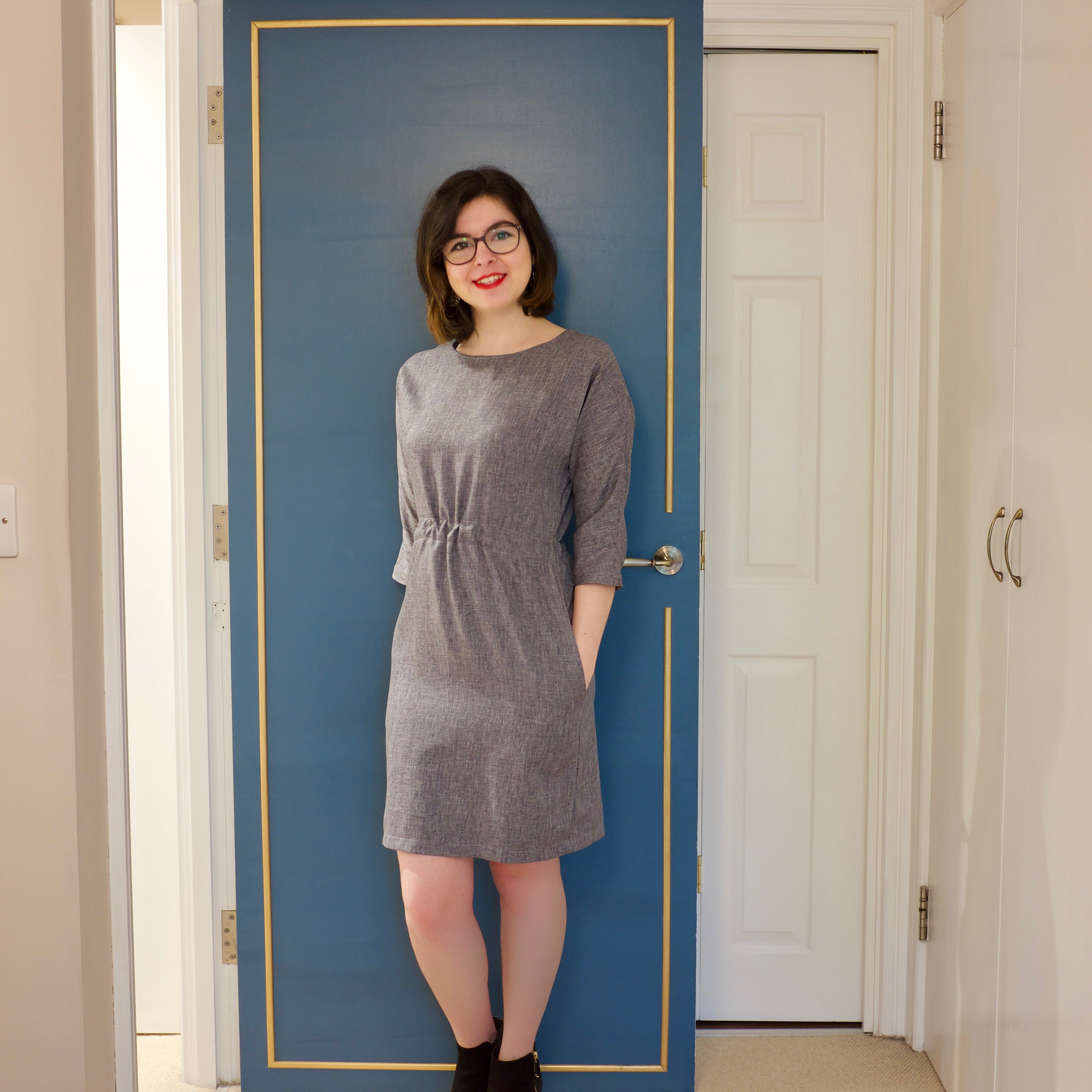 I decided to choose a relatively plain fabric, making the dress suitable for both daily workwear but also to be accessorised for days out. I bought this light to medium-weight blue/grey cotton from Simply Fabrics (Trimmings & Haberdashery) in Brixton. I was a little hesitant after purchasing it, thinking it might be too plain, but in fact, it just emphasises the simplicity of the dress, and that’s one of its best features.
