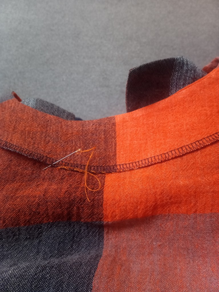 As you can see for yourself, I had no reason to be worried, the drafting is beautiful and that shoulder dart gives a lovely fit around the shoulders! I also liked that there is a bust dart to give shape as well. I think the fit around the bust and shoulders is good and then the rest is nice and loose and flowy – perfectly suited to this loose-weave linen!