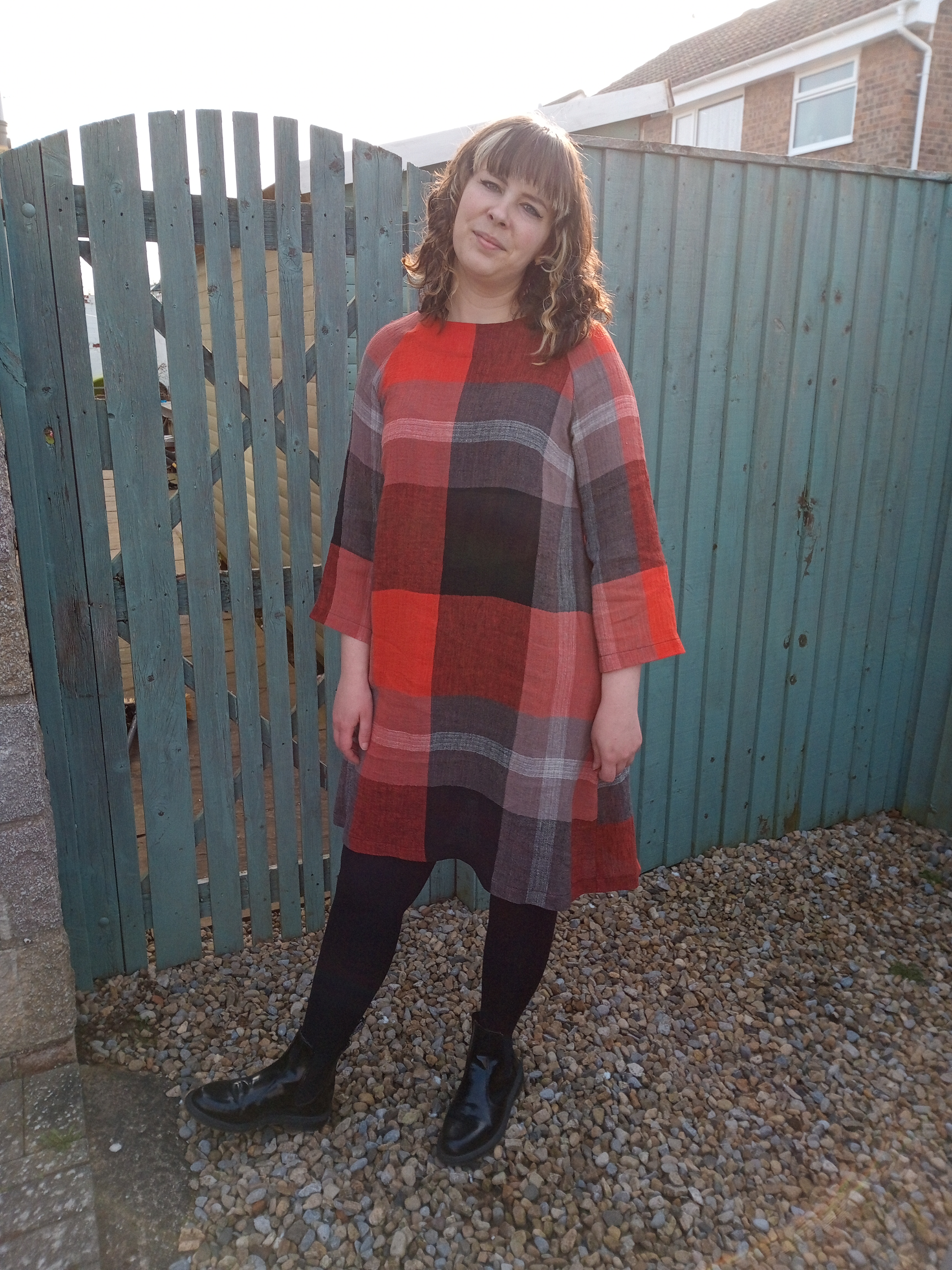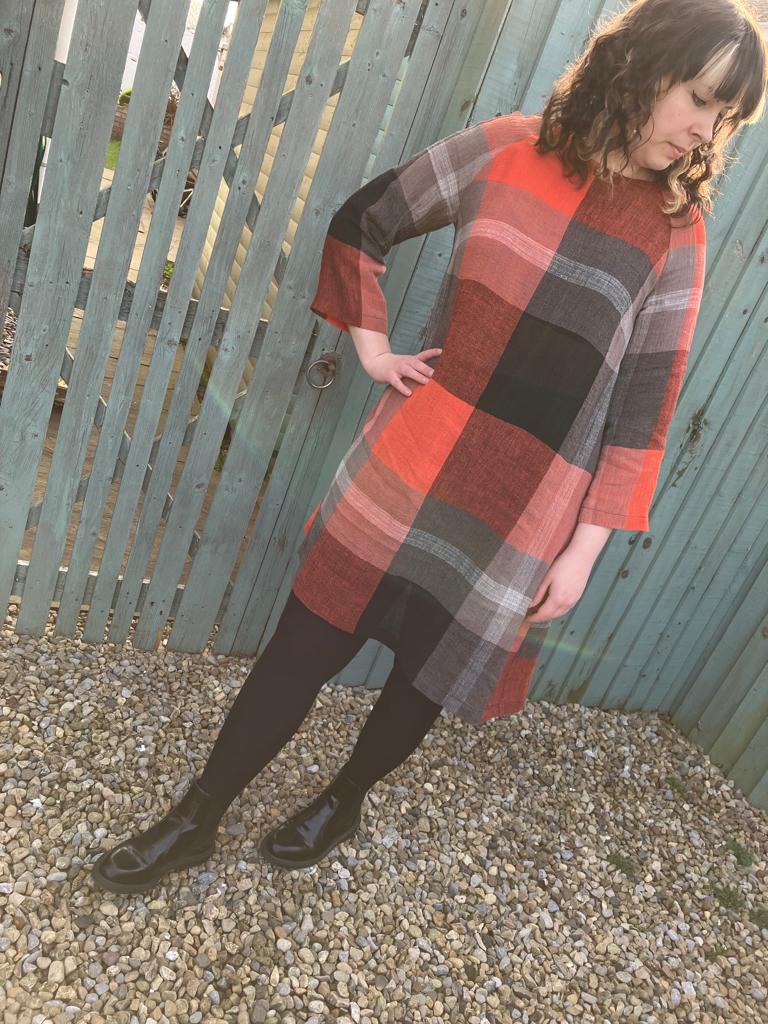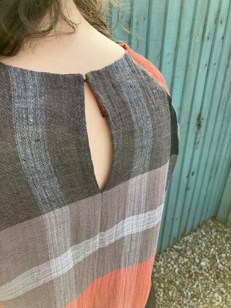 By chance, I saw a dress with a similar shape (but not a raglan) in one of my favourite high-street shops and it was made out of a giant check fabric. I remembered I had this linen at home and knew my decision had been made for me! This linen is an extremely loose weave, almost like a cheesecloth and has a crinkle texture to it. The giant plaid is yarn-dyed (not a print) and I feel like it needs a big canvas like The Raglan Dress to show off the scale of the design. Because there are so few seams in this pattern, there are no interruptions to a large-scale print like this.