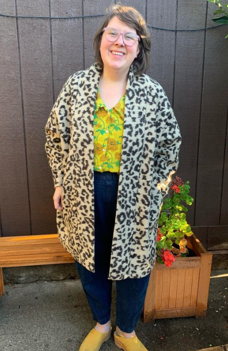 A summer version! Made from a mid-weight linen which holds the cocoon shape beautifully and a contrast binding to add extra interest we love Gabrielle’s incredible style. See her fab Insta at @bibbity-bobbity-buttons