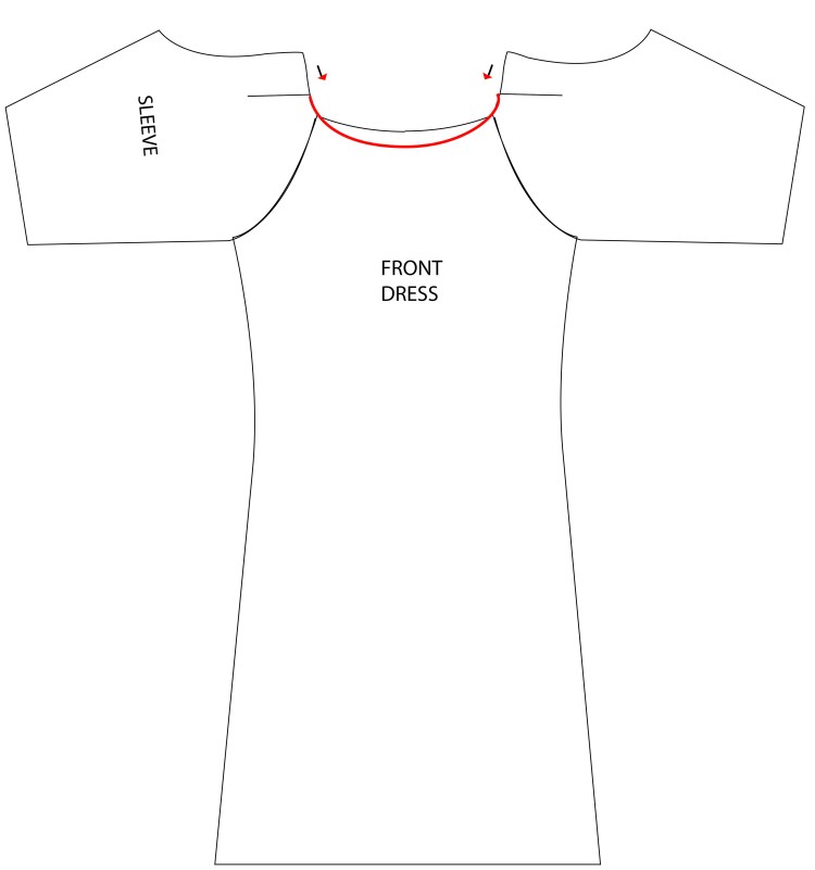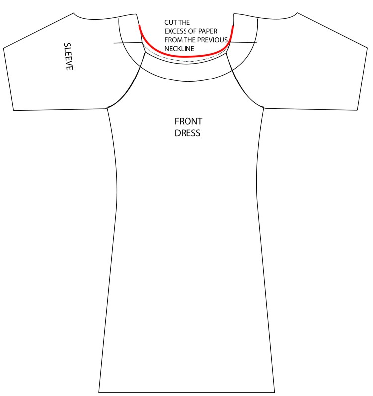 Dropping the curve at the front can make a big difference to the look of the dress. Just bear in mind that, when making adjustments, even small adjustments can change the whole shape of the garment. The tutorial below shows you how to drop the front neckline, making no changes to the shape at the back.