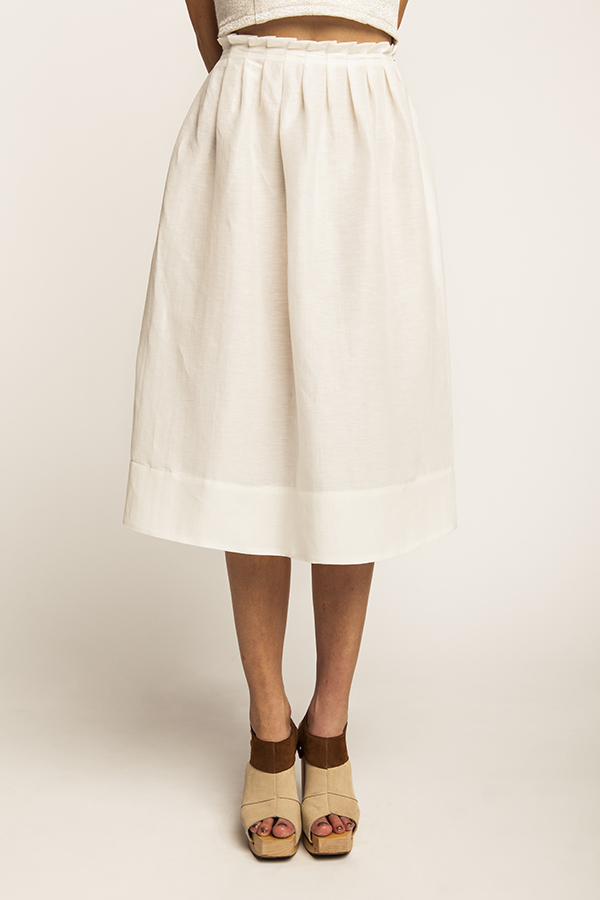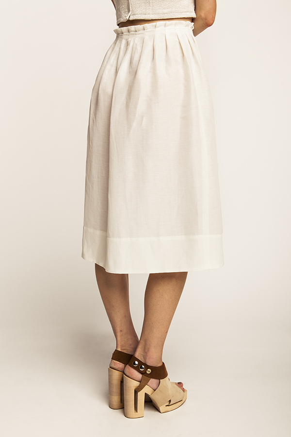A sweet skirt with pleated waistline, over-knee length and zipper fastening at the side. What a gorgeous Spring or Summer skirt.