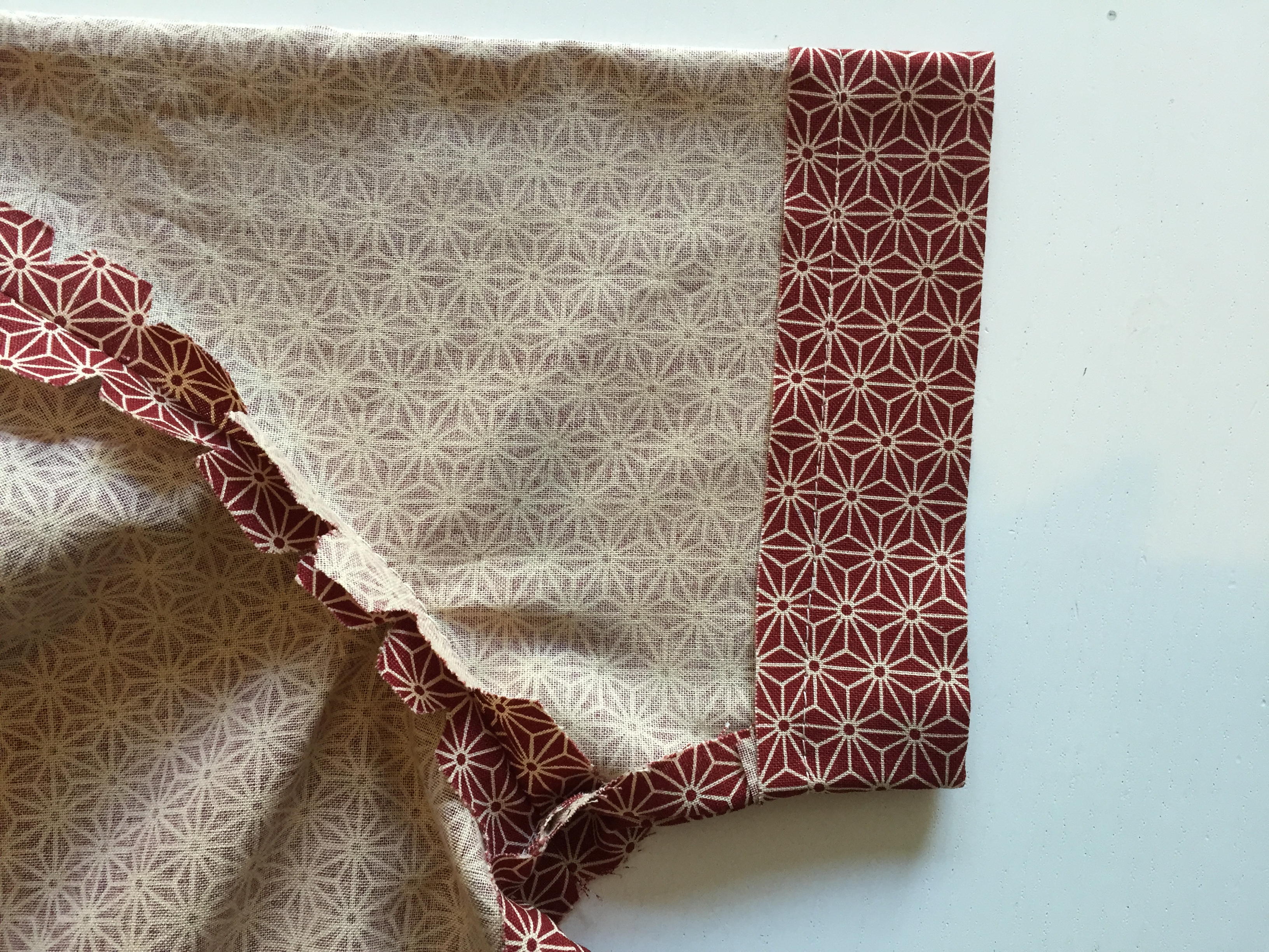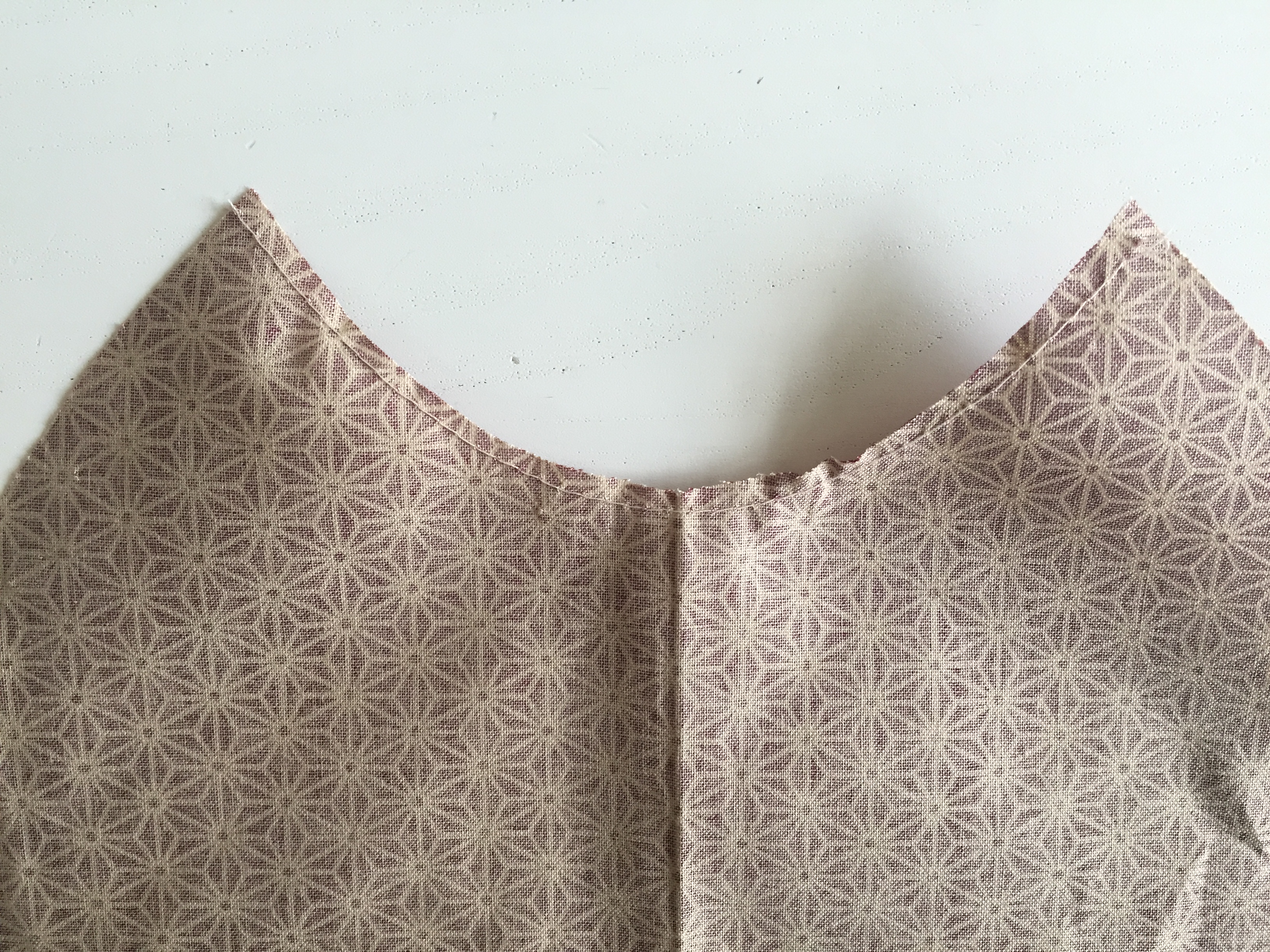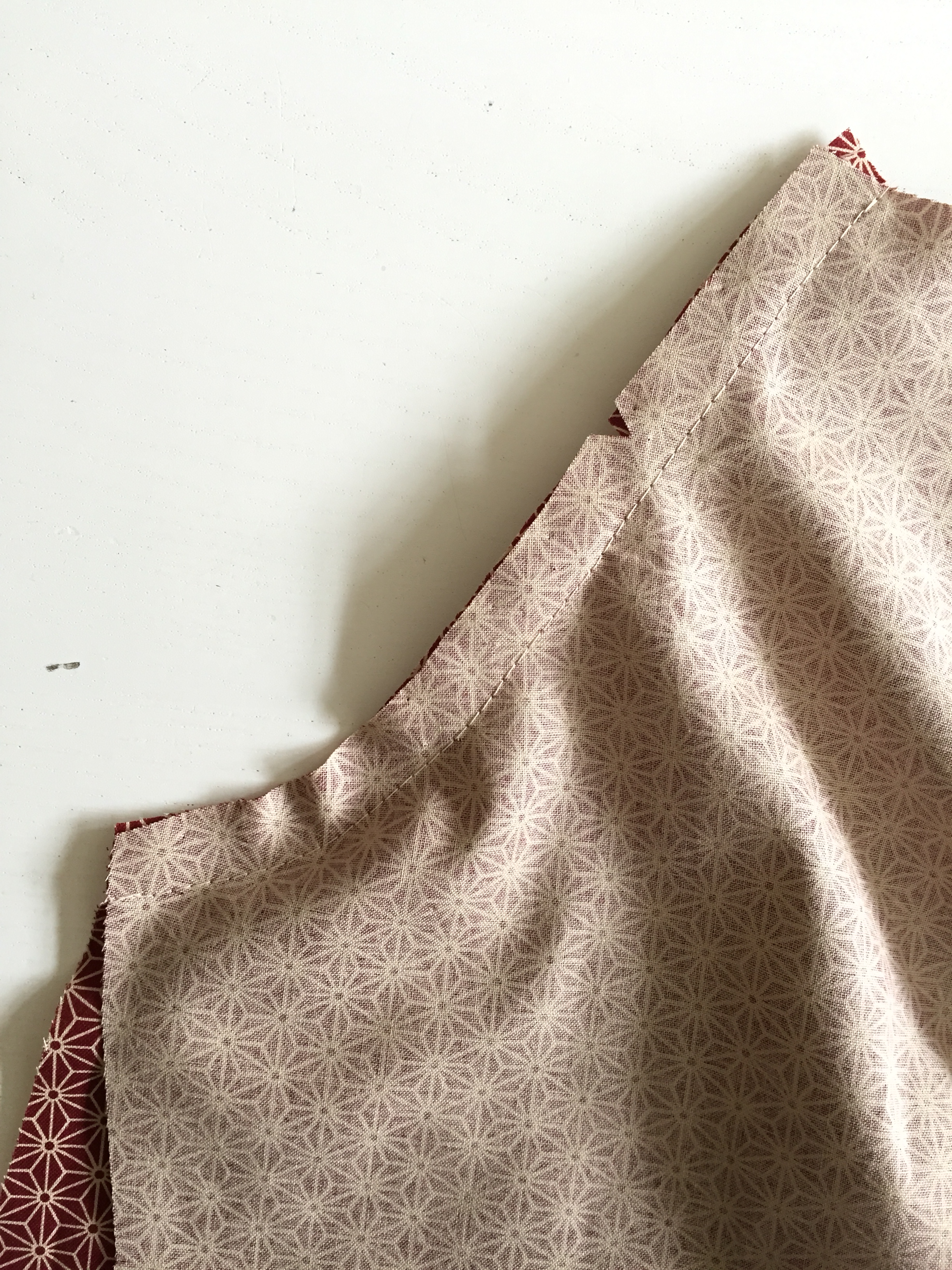 Snip into the seam allowance around the curved neck. Snip into the corners of the back pieces and turn the corners to the right side.
