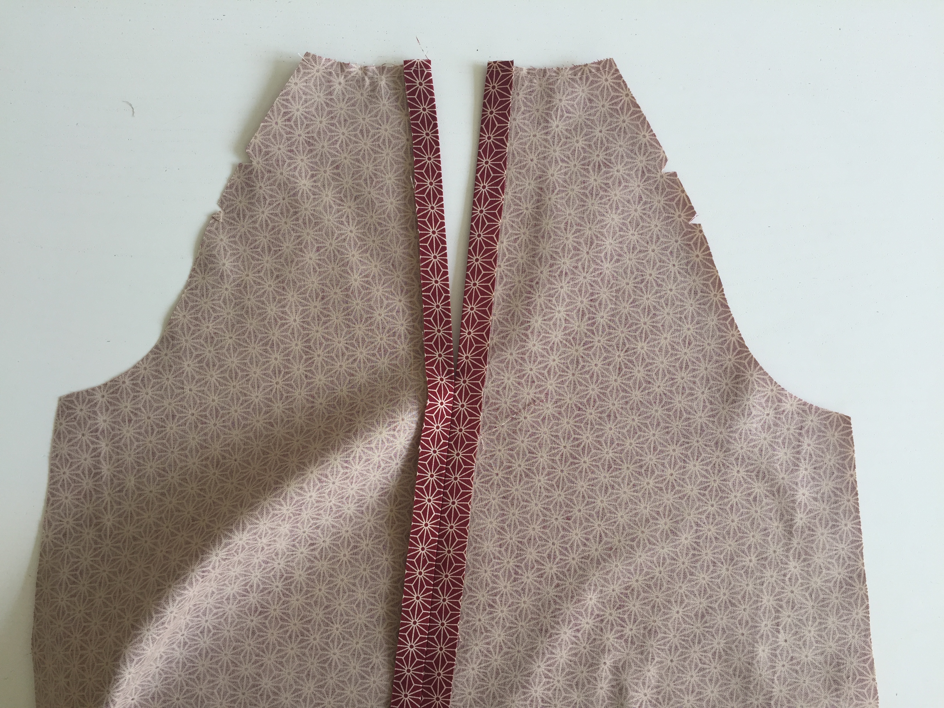Move to the centre back piece and pin your facing – ensuring the side and top edge are flush.