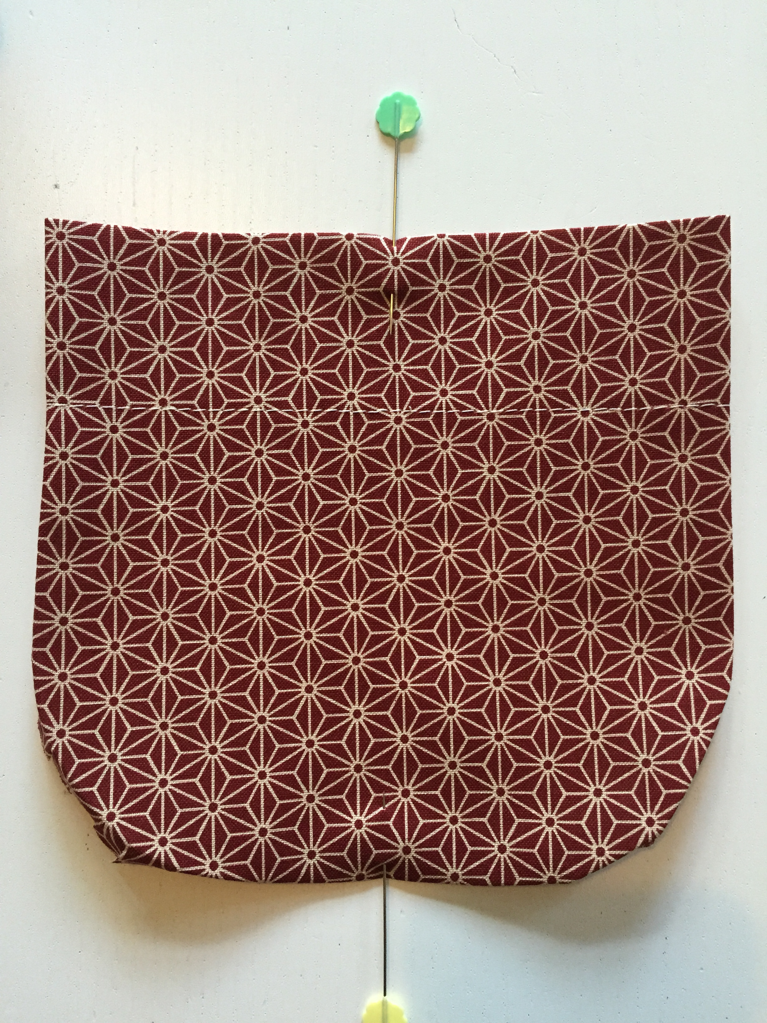 Place pins every 2cm around the pocket to keep it firmly in place for when you sew the pocket.