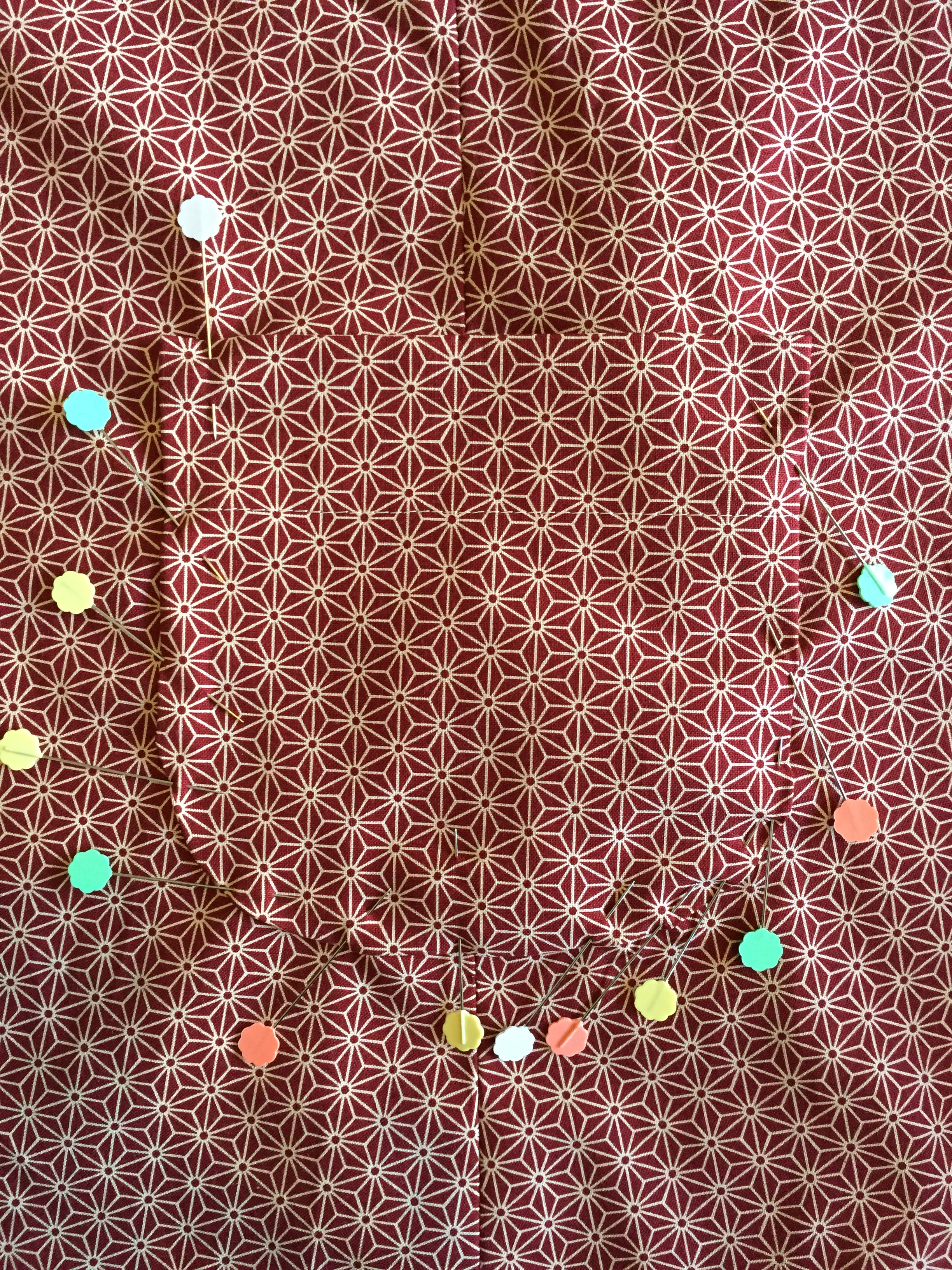 Pin the rest of the sleeve, making sure the pieces stay flush against each other along the edge. Once pinned, turn over to the other side and check that no fabric has got mistakenly caught.