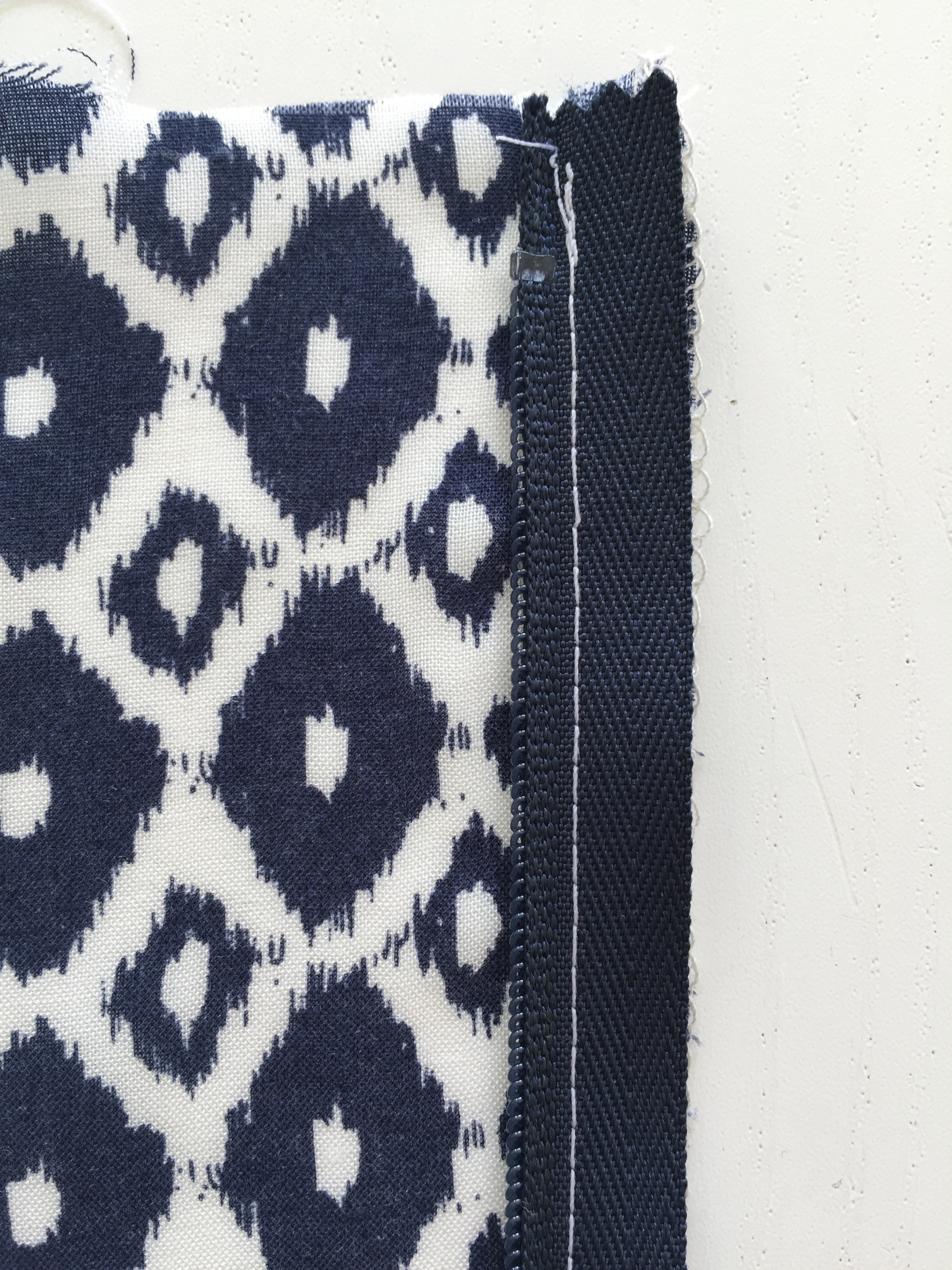 Starting from the bottom of the zip, sew this side of the zip to the garment. Once complete, zip up your zip and check that the zip starts at the same point on both sides at the top.