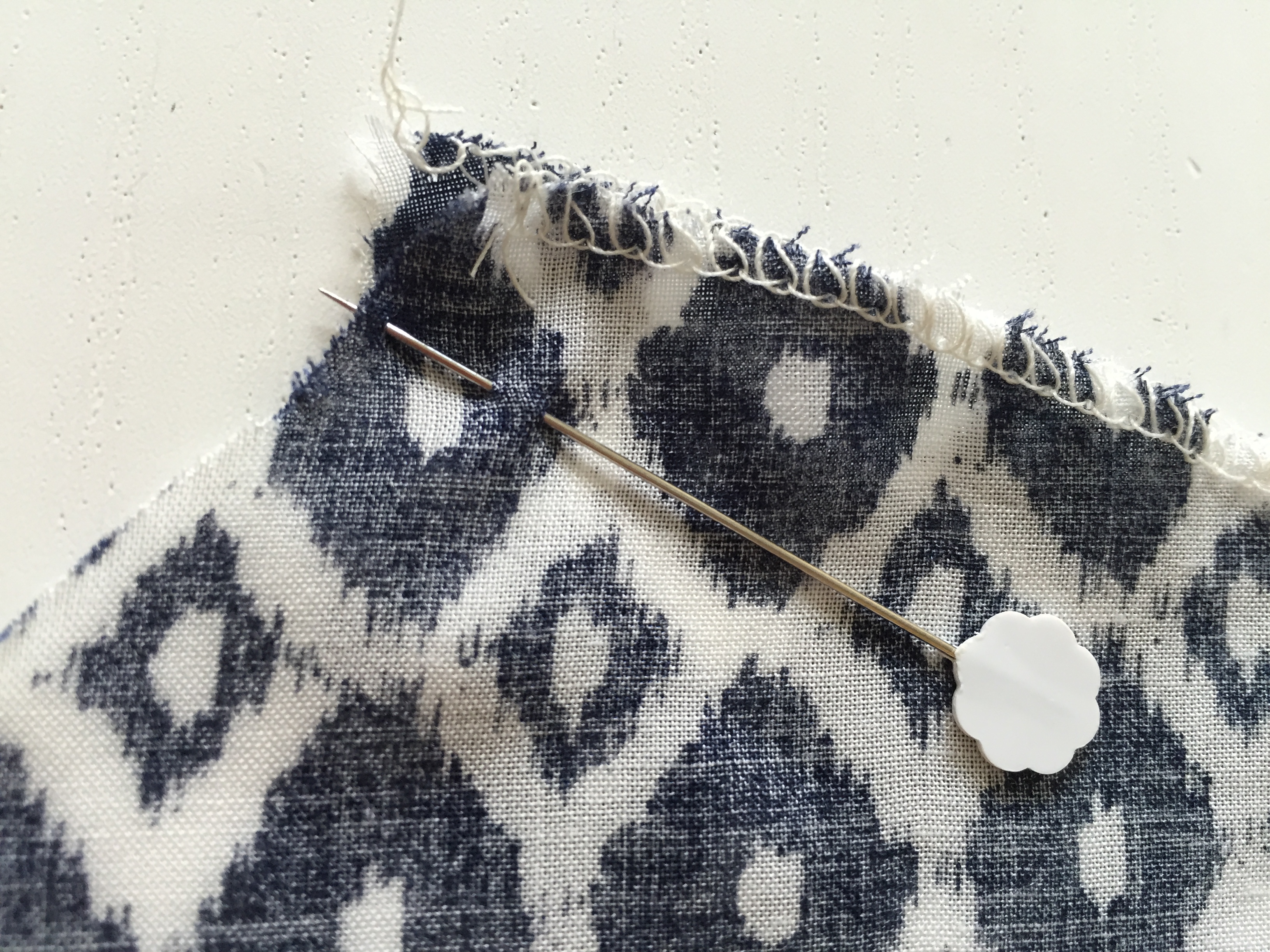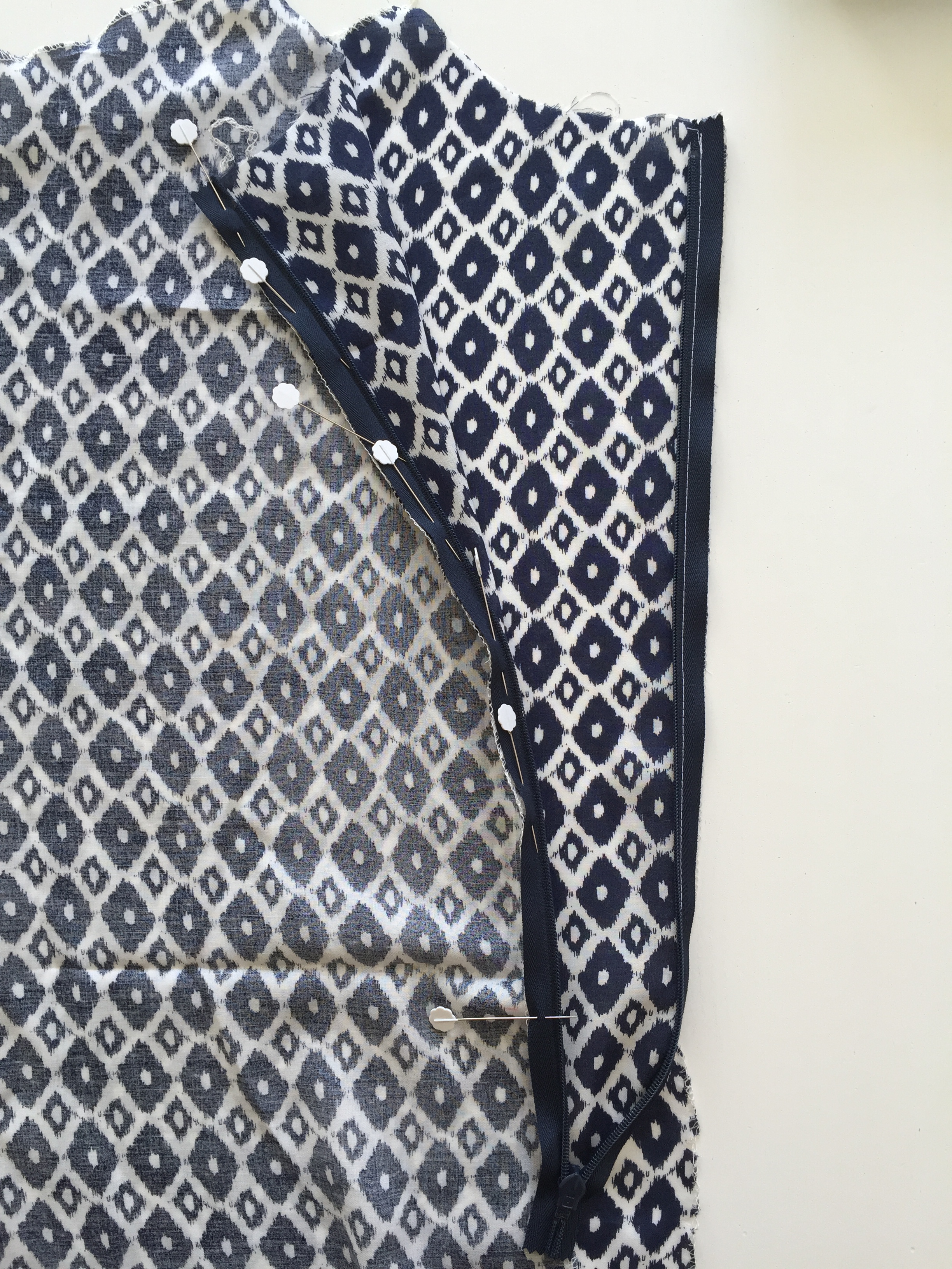 TIP: Place a pin lining up the bottom edges first and then work you way upwards. This will ensure that you don’t stretch the fabric down as you are pinning, leaving you with an uneven bottom edge!