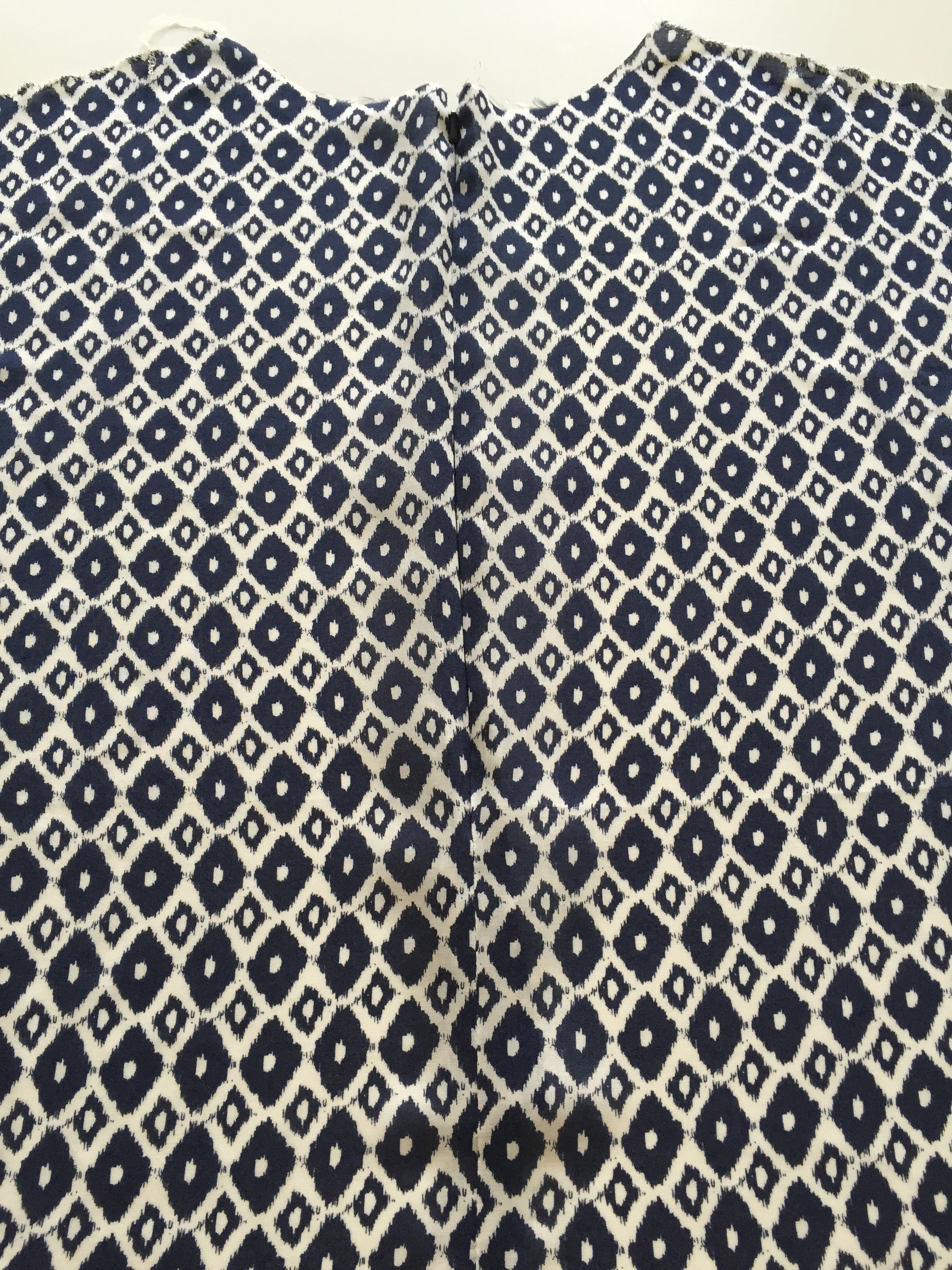 1.5cm seam allowance. Sew both sides using a 1.5cm seam allowance. When you open out this piece, you will see that the neckline has a lovely curve.