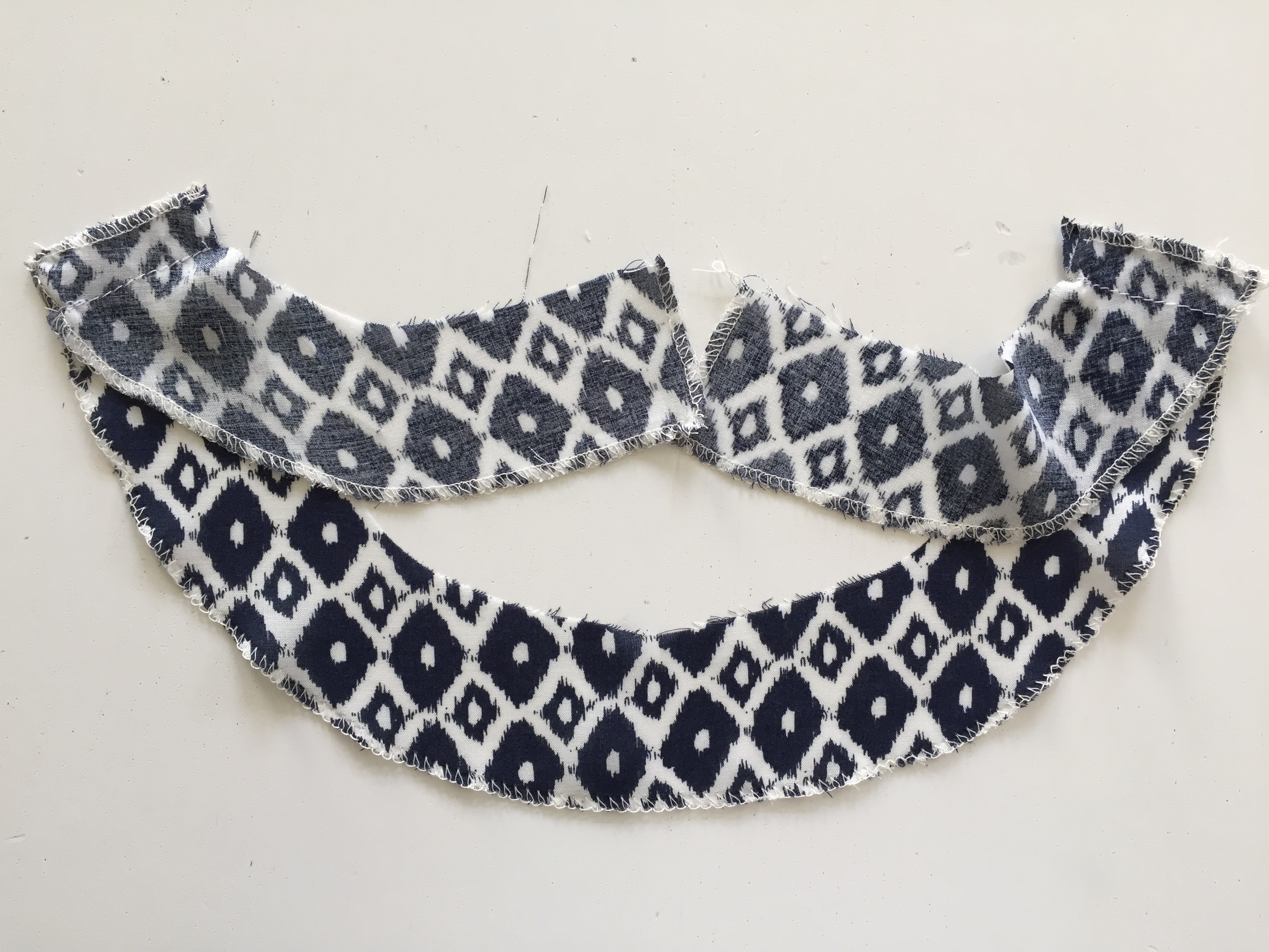 Here is your completed neckline piece. On the inside, you can stitch your facing piece by hand to the shoulder seam so that it stays flat.