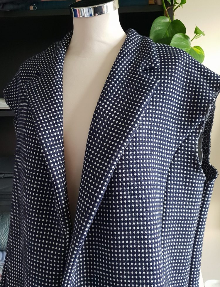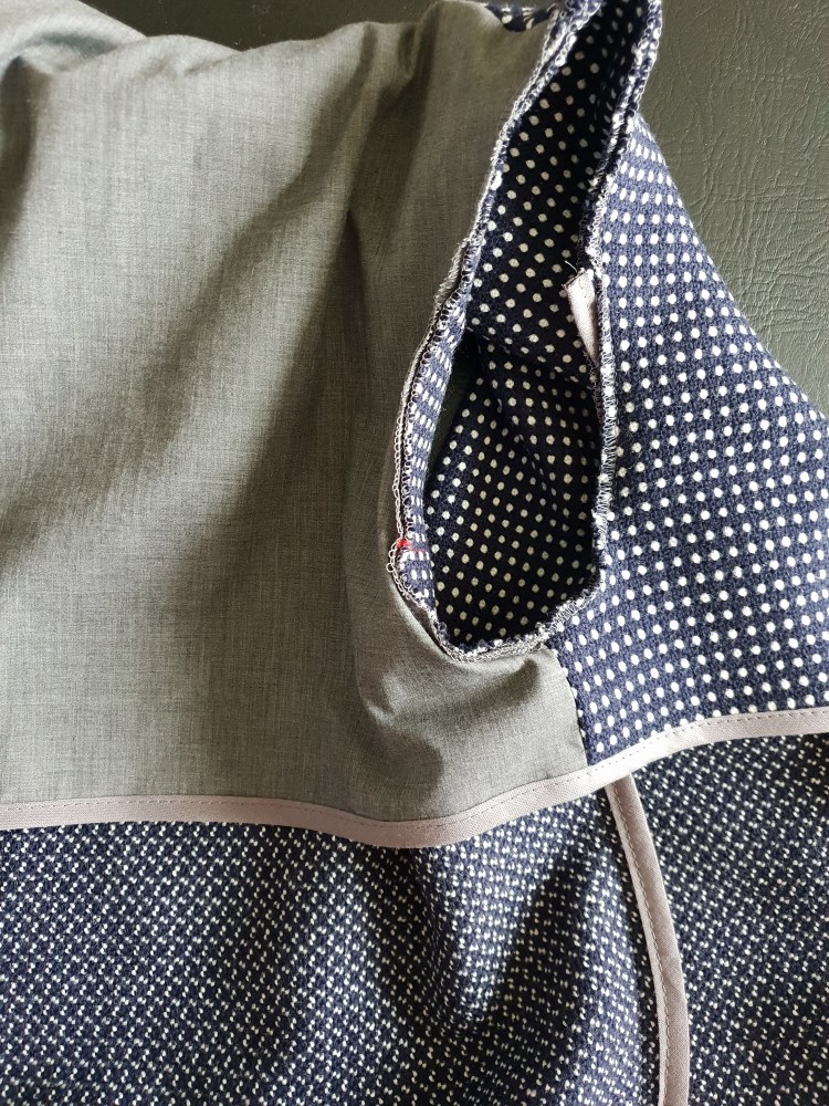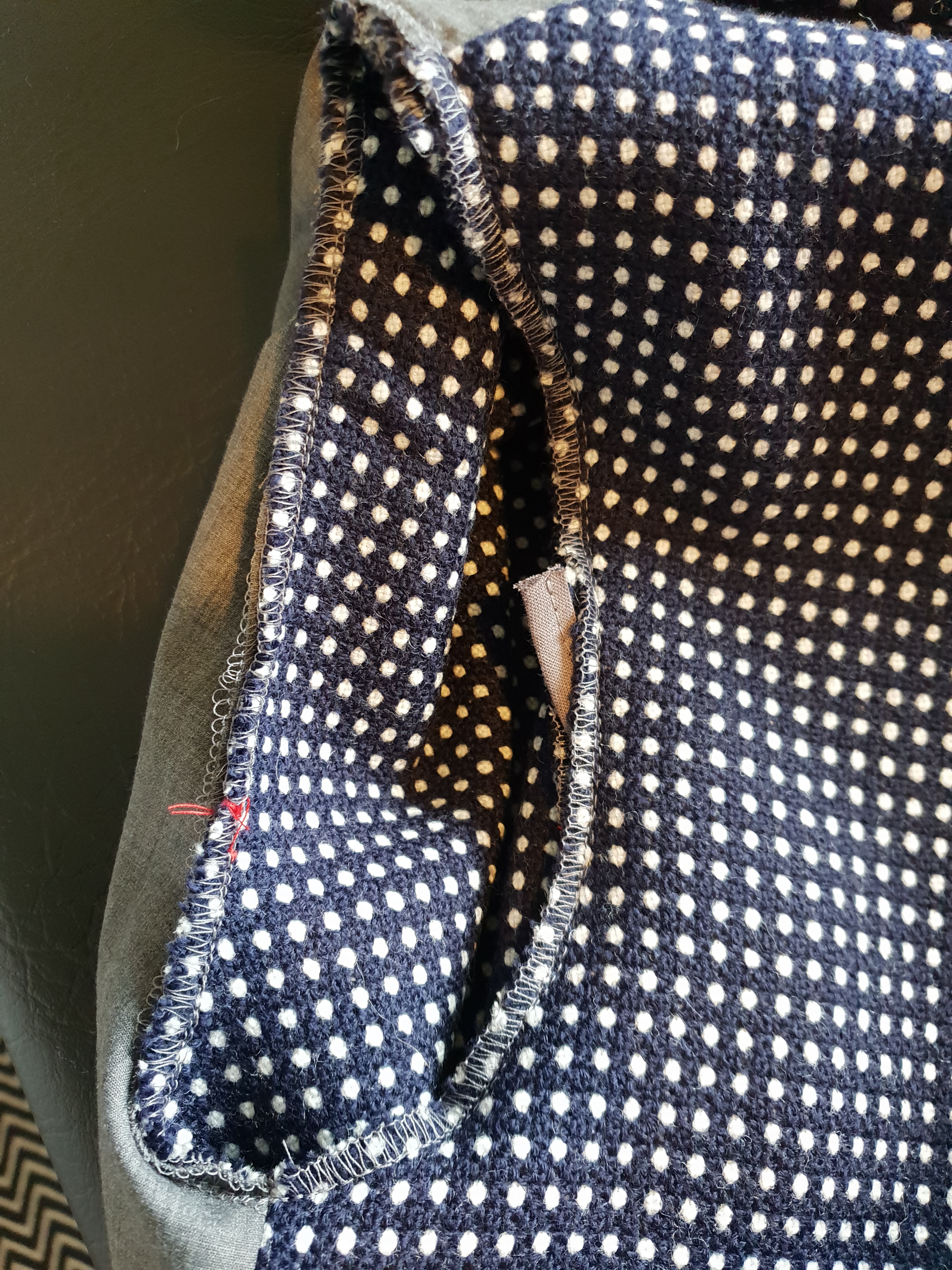 If the fabric is really thick or the sewing machine won’t cope with so many layers, move the lining out of the way for the moment and put the sleeve into the garment following the next steps. Once the sleeves are completed, fold the lining over, pull the sleeve through the hole and hand stitch the lining to the sewn sleeve.