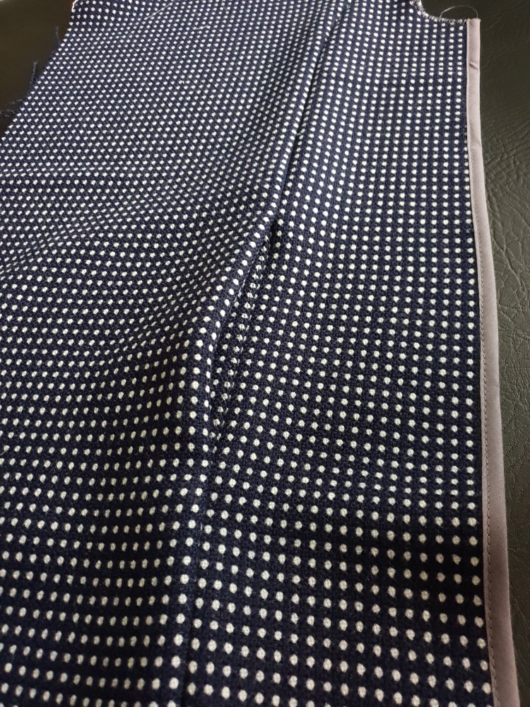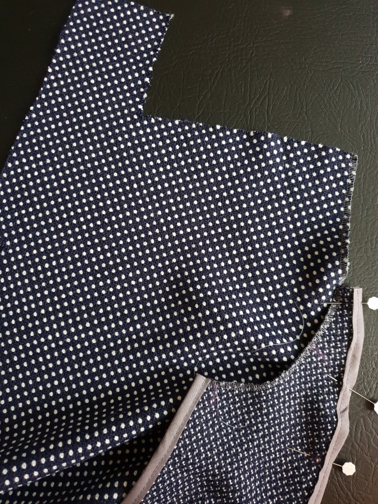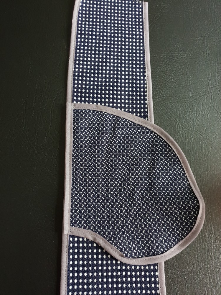 When you open out this piece from the right side there is a neat curved shape at the front side and the fabric edges should meet up perfectly.