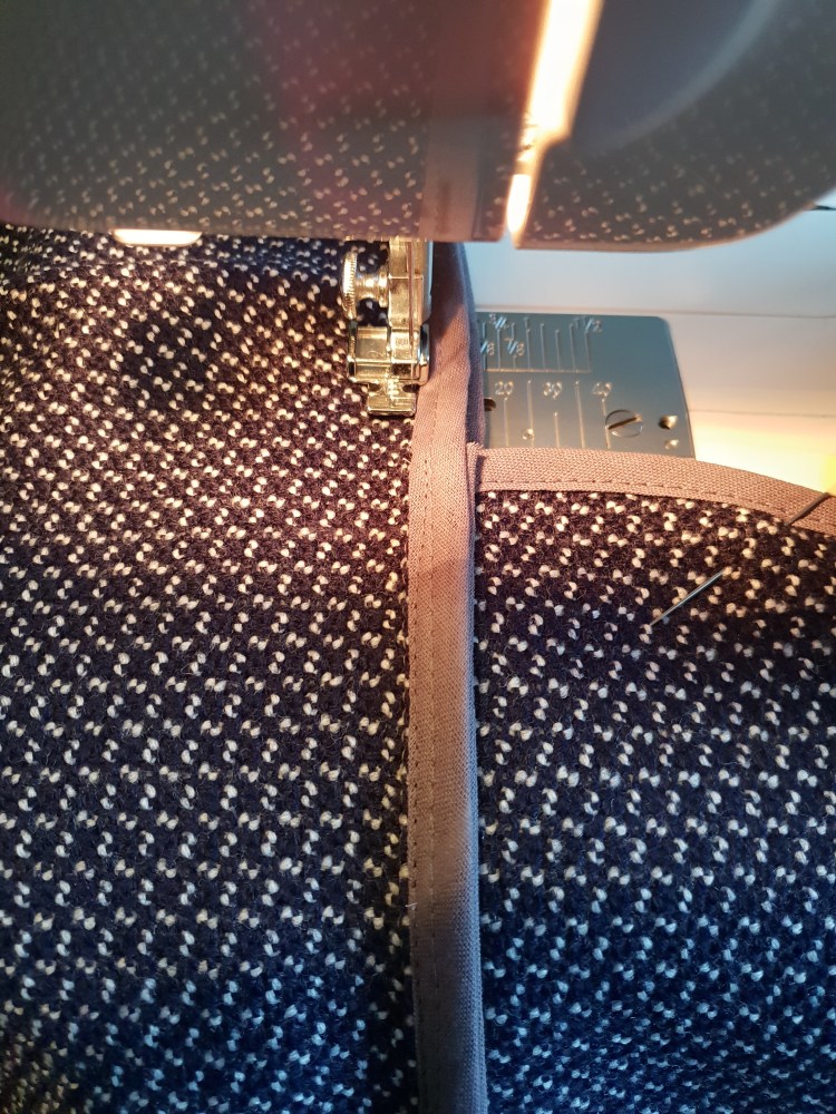 TIP – due to the piping, it is easier to sew this section with your zipper presser foot, otherwise, your standard presser foot will struggle to sew next to the binding.