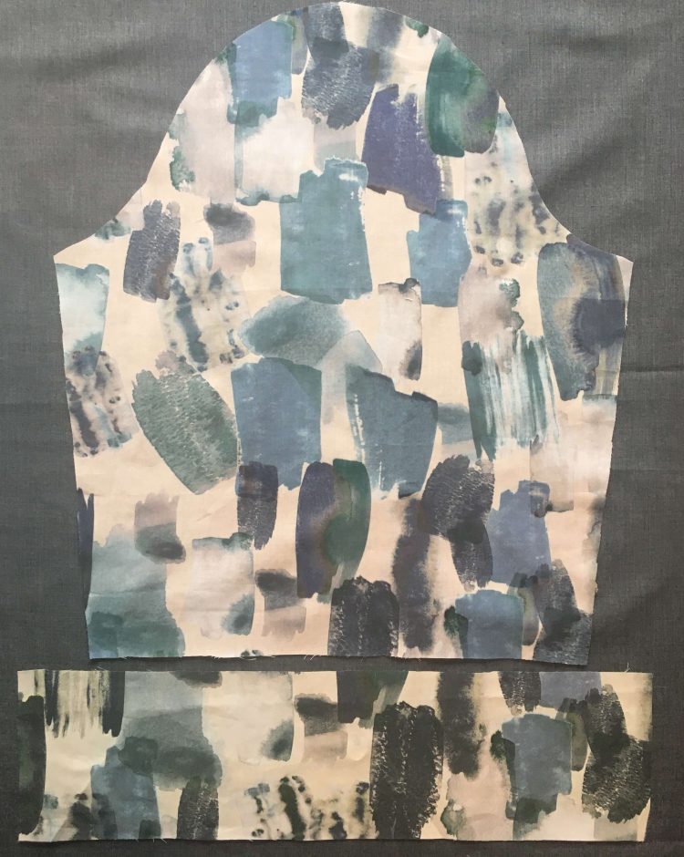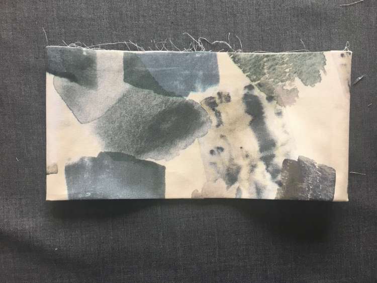 Step 1 – cut out your two cuffs (placed on the fold of the fabric). Fold wrong sides together and sew each side seam using a 1cm seam allowance.