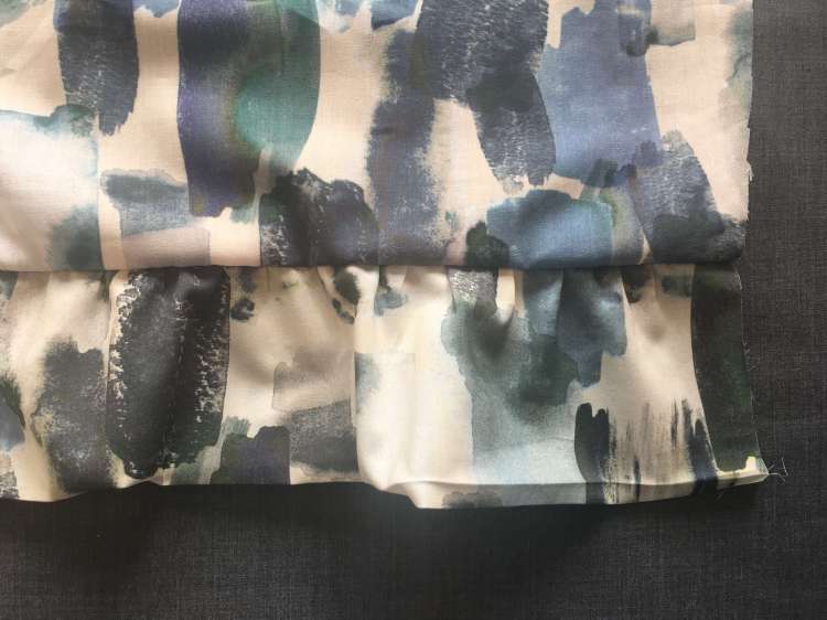 Step 2 – turn to the right side and fold so that you have your continuous cuff. Iron in place and sew across the very top edge to keep the fabric from moving whilst you create the gathers – either with elastic or hand/machine gathering.