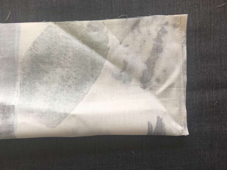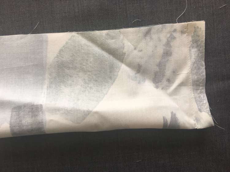 Step 3 – Turn to the right side, push out the corners and iron flat. With your sewing machine, sew the two top edges of the cuff together to prevent them from moving when you do the gathers.