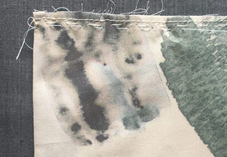 Then, starting on the left-hand side start a row of stitches just underneath the stitches you have just done, this time keeping the thread long on the left and when you get to the right-hand side you can close knot and cut the thread.