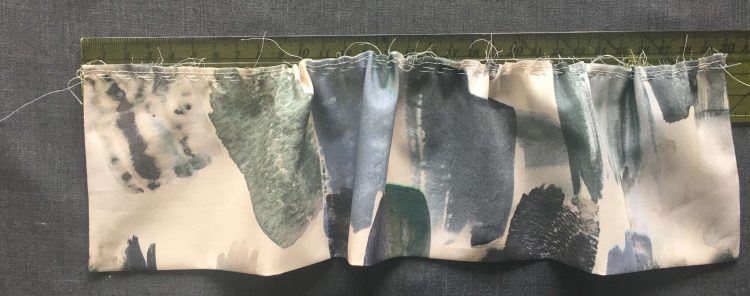 Once you have pulled each side and it fits the finished cuff width you can close and knot the loose threads that you used to pull the gathers. Don’t worry if the gathers aren’t even now, just focus on getting the width right. Once you have the width right, you can even out the gathers before attaching to the cuff.