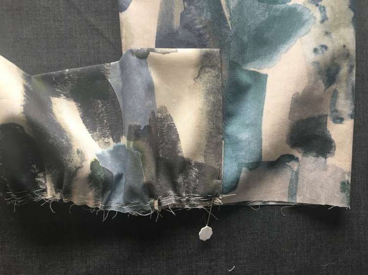 Step 9 – Place your gathered cuff edge right sides together onto the sleeve and pin the edges.