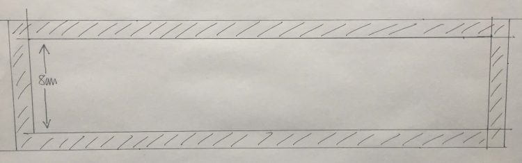 Step 1 – Draw a rectangle 8cm wide by your new finished cuff width – in this example it is 39cm. Add on a 1cm seam allowance. Cut 2 – one for each sleeve.