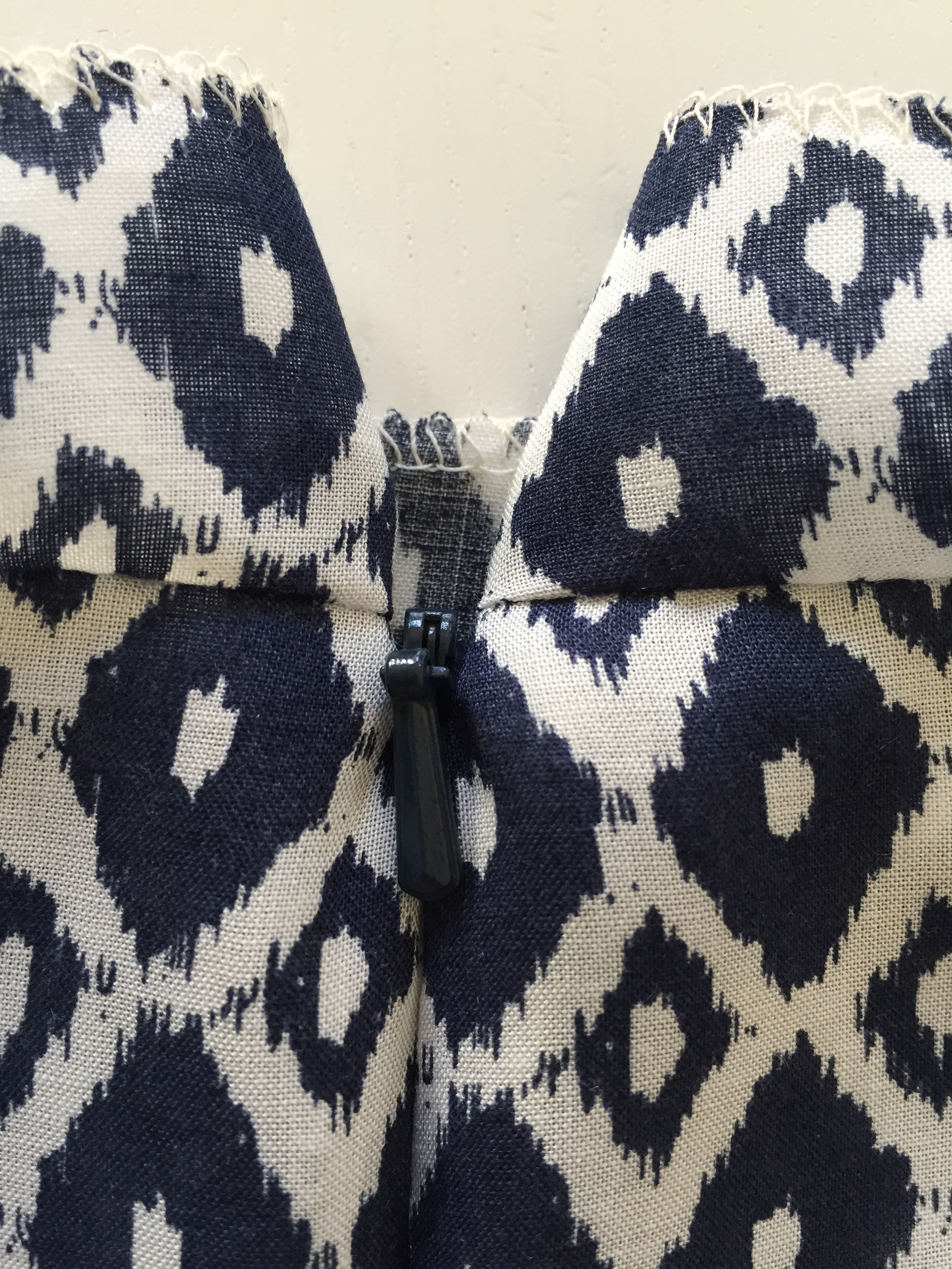 10. Once sewn, look at the right side of the fabric to ensure that it’s all looking good! At the CB, turn in your seam allowance and pin. Hand stitch the facing to the zip, making sure no stitches are visible from the right side.
