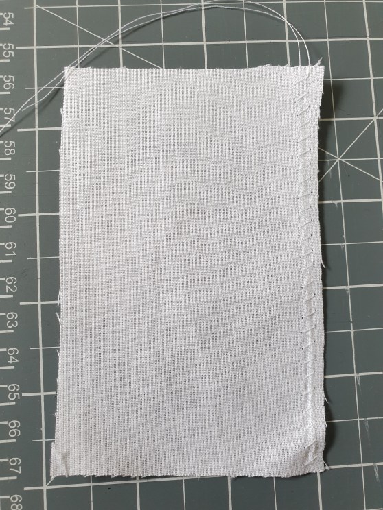 Overlock/zig-zag stitch one long edge. Leave the other long edge and upper edges raw.