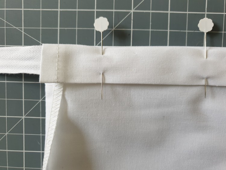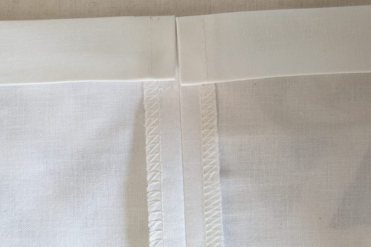 Turn over the pressed edge another 2.5cm and press again. This is creating the casing for the ties. Try to be as accurate as possible when turning over and pressing.