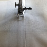 Stitch the turned over casing. The stitching line should be as close as possible to the lower edge of the turned over piece to create enough space for the tie to feed through.