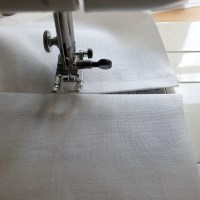 Turn over the pressed edge another 2.5cm and press again. This is creating the casing for the ties. Try to be as accurate as possible when turning over and pressing.