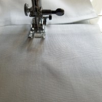 - We use an overlocker to neaten the edges of the fabric. If you don’t have an overlocker, you can use a simple zig-zag stitch but, be careful, as sometimes the zig-zag stitching can distort the perfectly cut raw edges of the fabric. It’s better to use a wider and longer zig-zag to prevent this from happening. Zig-zag stitching away from the raw edge (rather than right next to it) will prevent the stitches from twisting and distorting the shape. Most sewing machines have an additional presser foot that can be used for overlocking (often referred to as an overcasting presser foot) but these sometimes need to be purchased as an additional presser foot. Check the sewing machine’s manual to see what setting/presser foot they suggest for overlocking/overcasting/zig-zag stitching.