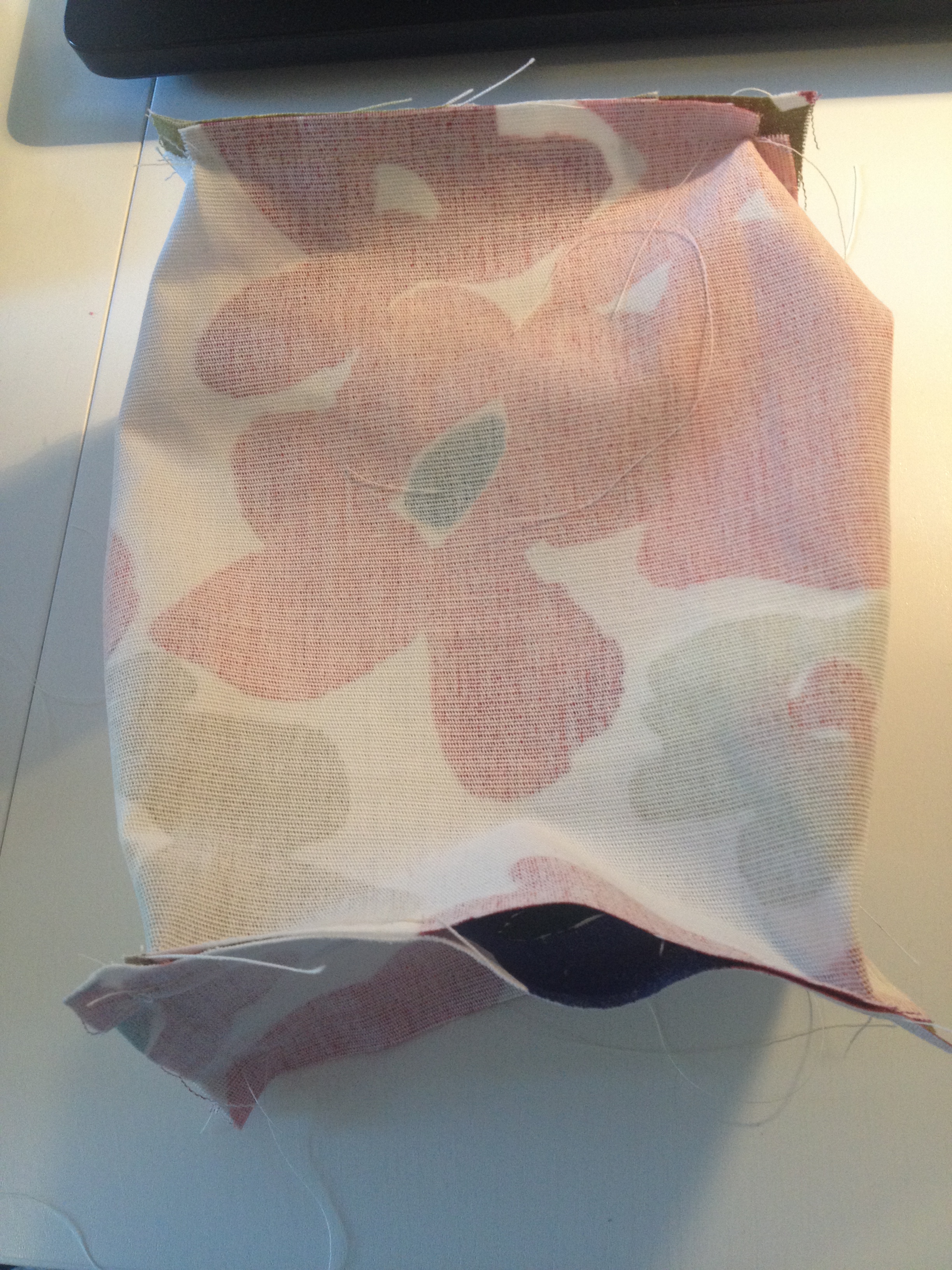 Now we just need to sew the two smaller sides. You should be able to manipulate the handle side so that it flattens out against the main piece where you now need to sew. Sew from notch to notch using a 1cm seam allowance.