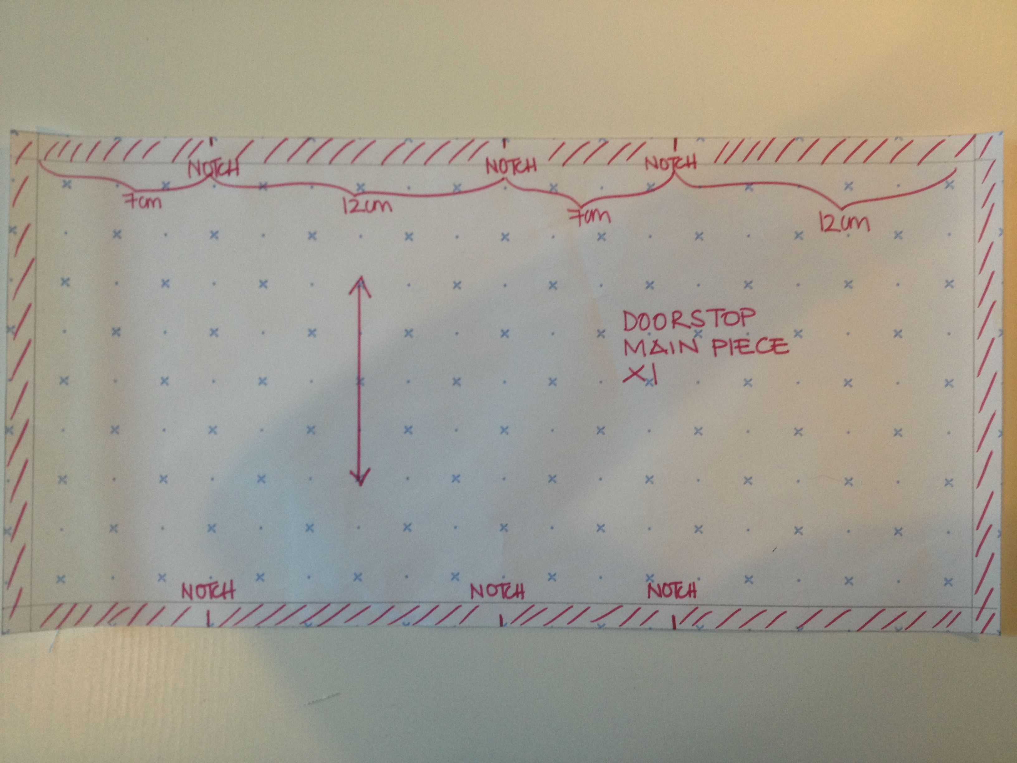 On your main piece mark out the following notches across the width on the top and bottom of the fabric :